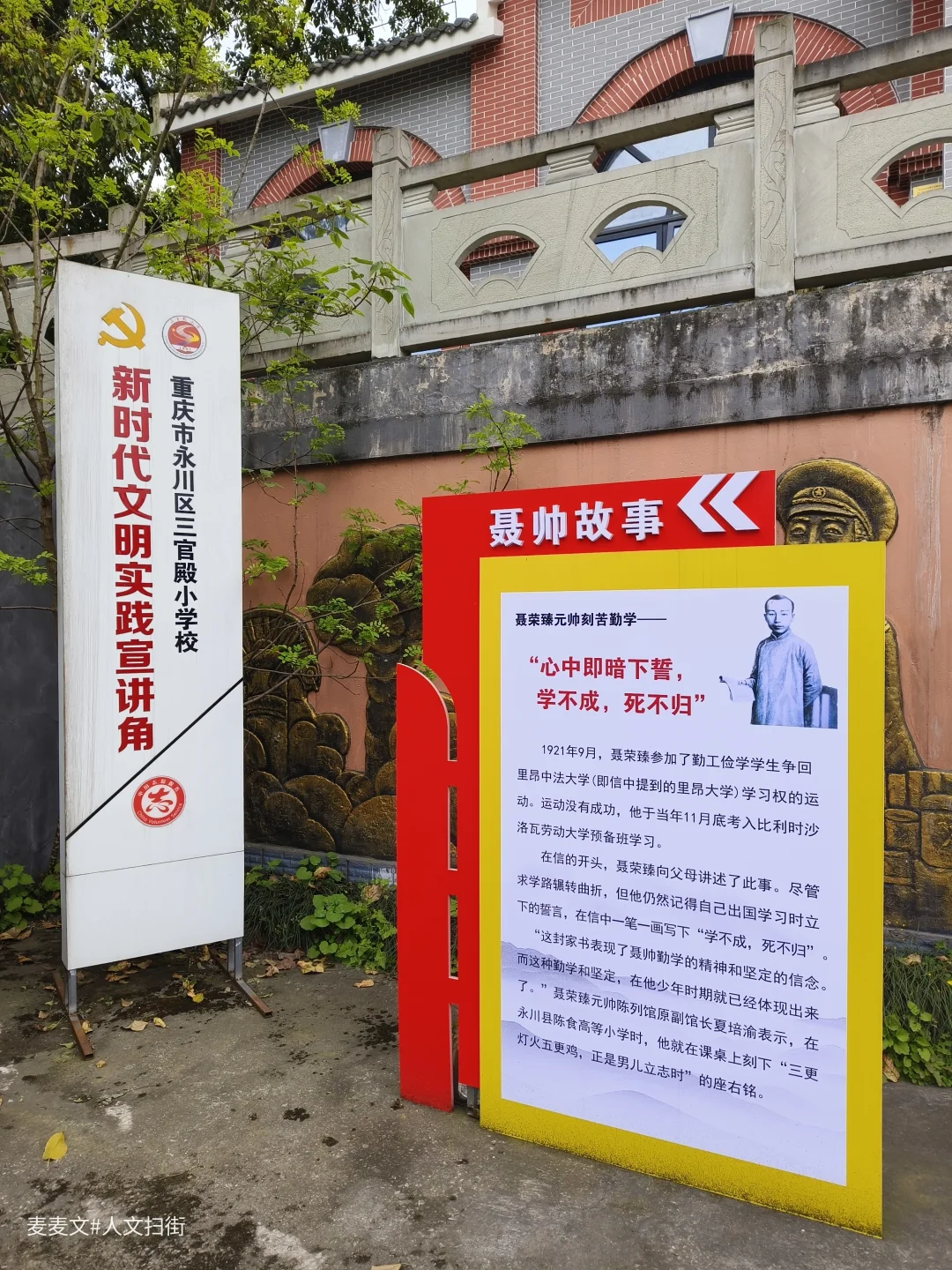 三官殿小学,位于重庆市永川区陈食街道,是一所承载着厚重历史与光荣传承的学校。它创办于1907年,在悠悠岁月中已走过百余年历程。 走进这里,首先映入眼帘的是那颇具古韵的校门。斑驳的墙面,虽历经风雨侵蚀,漆色脱落,却更显岁月痕迹。飞檐翘角,仿佛在诉说着往昔的故事。 这里不仅是知识的殿堂,还是聂荣臻元帅的母校。站在校园中,仿佛能感受到当年聂帅在这里求学时的意气风发,那是对知识的渴望,对未来的憧憬。 如今,三官殿小学依然在教育的道路上砥砺前行,传承着历史的血脉,培养着新时代的人才。它就像一部活着的史书,让每一个走进这里的人,都能触摸到历史的脉络,感受到那份独特的人文魅力。