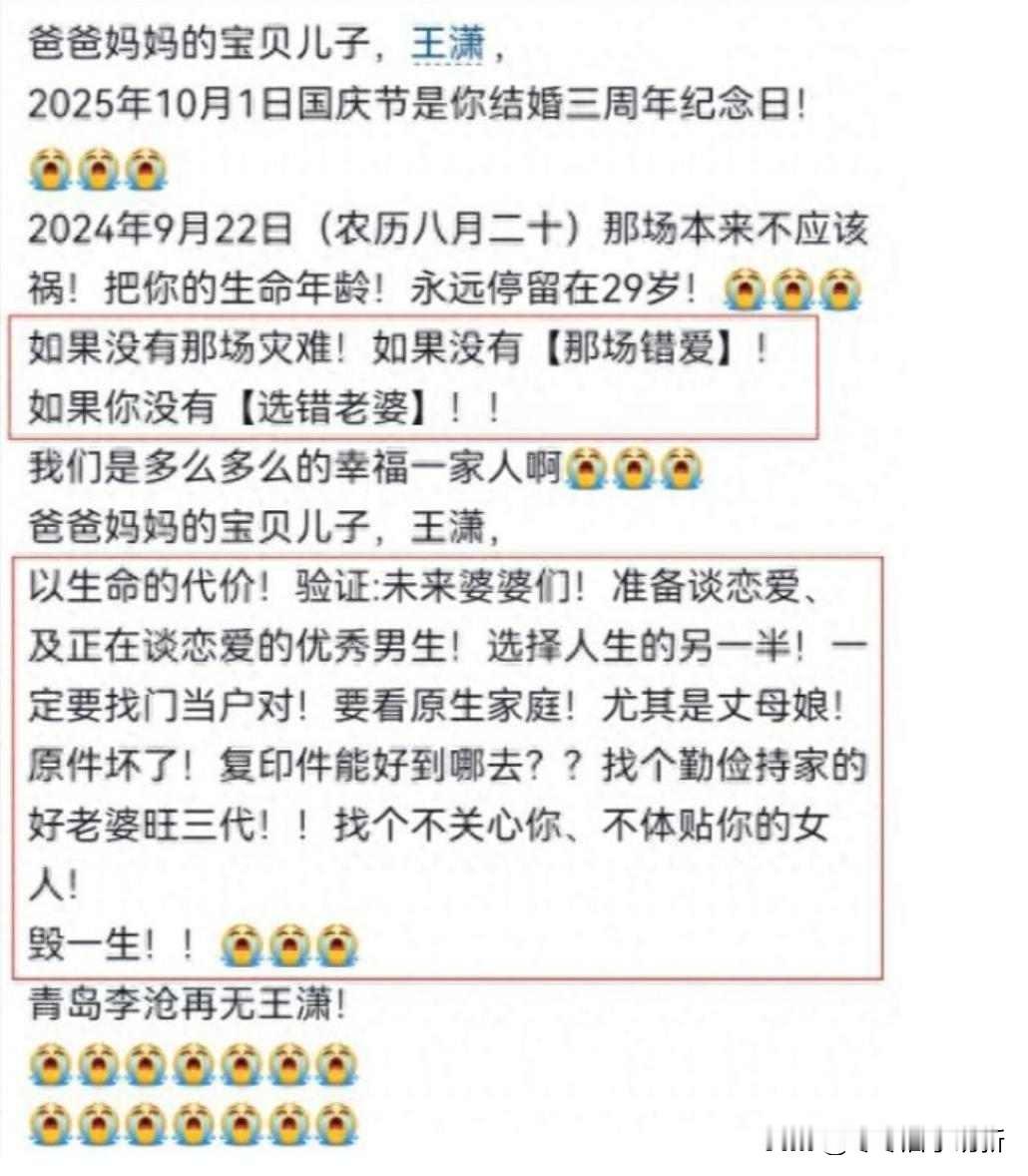 他累倒在路上,她沉默不语,谁该负责? 王潇九月底出的事,那天下着小雨,他送完最后一单外卖,没撑住,撞上了护栏,才二十九岁,退伍军人,个子高,干活从不偷懒,白天上班,晚上跑单,车让老婆开,自己走路或者骑摩托,结婚三年,从来没跟人吵过架,连句重话都没说过。 他爸后来发了篇文章,说儿子是让儿媳害死的,那天晚上儿媳非拉他去买票看演出,吃完夜宵都快三点了,还说儿媳婚后老往娘家拿钱,把儿子当成了提款机,这话一出来网上就炸了,有人骂儿媳是白眼狼,有人说她不懂事,可她一直没吭声,不是心虚,是不敢开口,一开口就被人说不孝,说败家。 王潇这个人,特别能忍,不喊累,也不抱怨,退伍兵的脾气就是这样,有事自己扛,家里人都觉得男人就该这样,不能软,他老婆也没看出他有多累,她可能觉得他撑得住,或者压根没想过问他一句你累不累,这种关系里,没人敢说累,也没人主动问一句,大家都觉得,你干你的,我收着,这就叫爱。 他爸临走前说了句都怪我,这话被人当成了认罪,可这哪是认错,是人一下子没了亲人,心里发慌,下意识往自己身上揽,心理学早说过,六成以上丧偶的人第一反应都是怪自己,这不是忏悔,是疼得没处说,可网友不听这些,他们只看字面,老人说啥他们信啥,没人问为啥他不说累,没人问为啥没人拦他。 赔偿的事也露了馅,老人发帖那会儿,正好赶上下谈赔偿款,王潇没留遗嘱,收入虽高但没怎么打算,婆婆心里憋着火,趁这机会全倒了出来,离婚分财产,丧偶争遗产,这类案子越来越多,2024年上半年比去年多了两成,钱这东西,最容不得人,最容易闹翻。 儿媳到现在都没回话,不是她没道理,是她一开口准得挨骂,社会总觉得女人丈夫死了就得哭得撕心裂肺,不哭就是心冷,杭州有个女人车祸后没哭够,网上骂她装,她这次干脆不说了,结果又有人说她心虚,这世道,女人怎么做都错。 这场悲剧没人赢,王潇太拼了,老婆没看出来,父母也没开口,家里谁都不敢说实话,男人不能说累,女人不能提要求,长辈也不能插手,大家都把牺牲当本分,把沉默当懂事,可这样的关系,早晚得垮。 车祸主要因为开车太累,责任该由交警来定,舆论吵来吵去解决不了问题,真正该想想的是,为什么一个男人宁可熬到倒下,也不肯说一句我实在撑不住了,为什么一个家,连一句你累不累都问不出口,当爱变成一个人不停扛着,没人能一直撑下去。