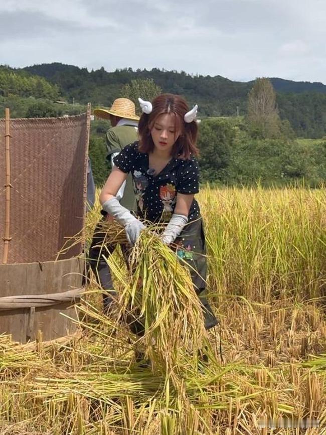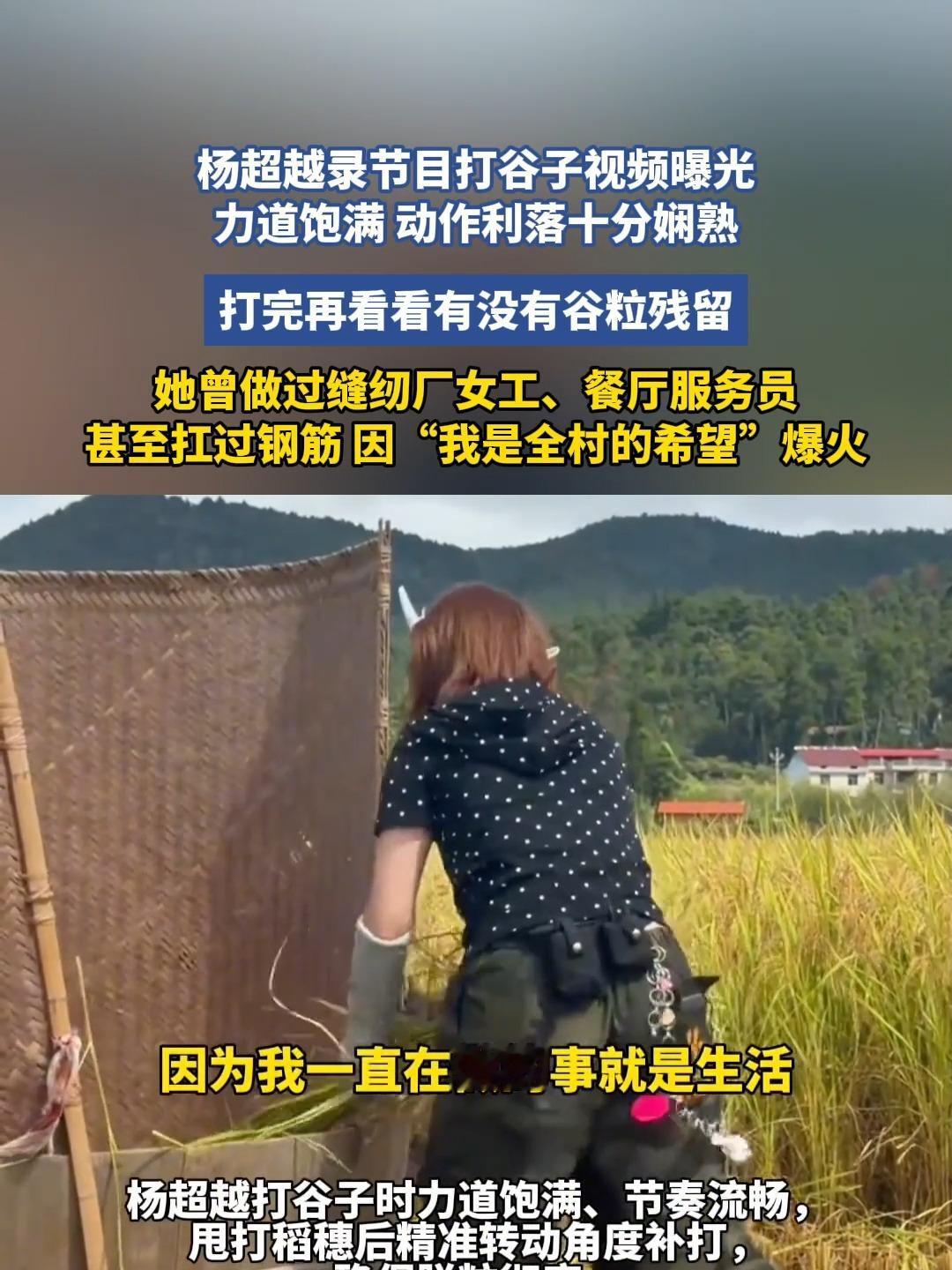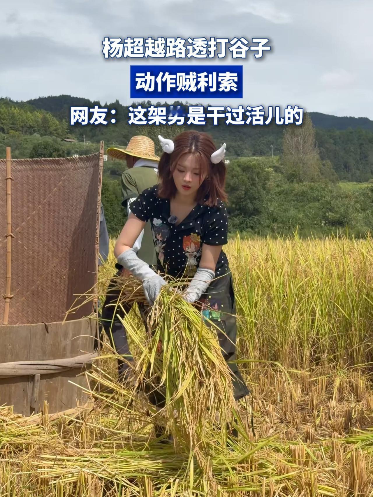 看到杨超越在打稻谷,真的有劲,确实是干过农活的架势。杨超越可能是当今娱乐圈里面的