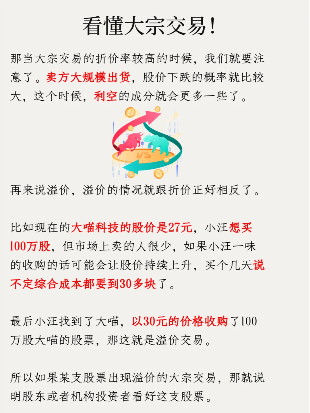 最后小汪找到了大喵,以30元的价格收购了100万股大喵的股票。那这就是溢价交易。