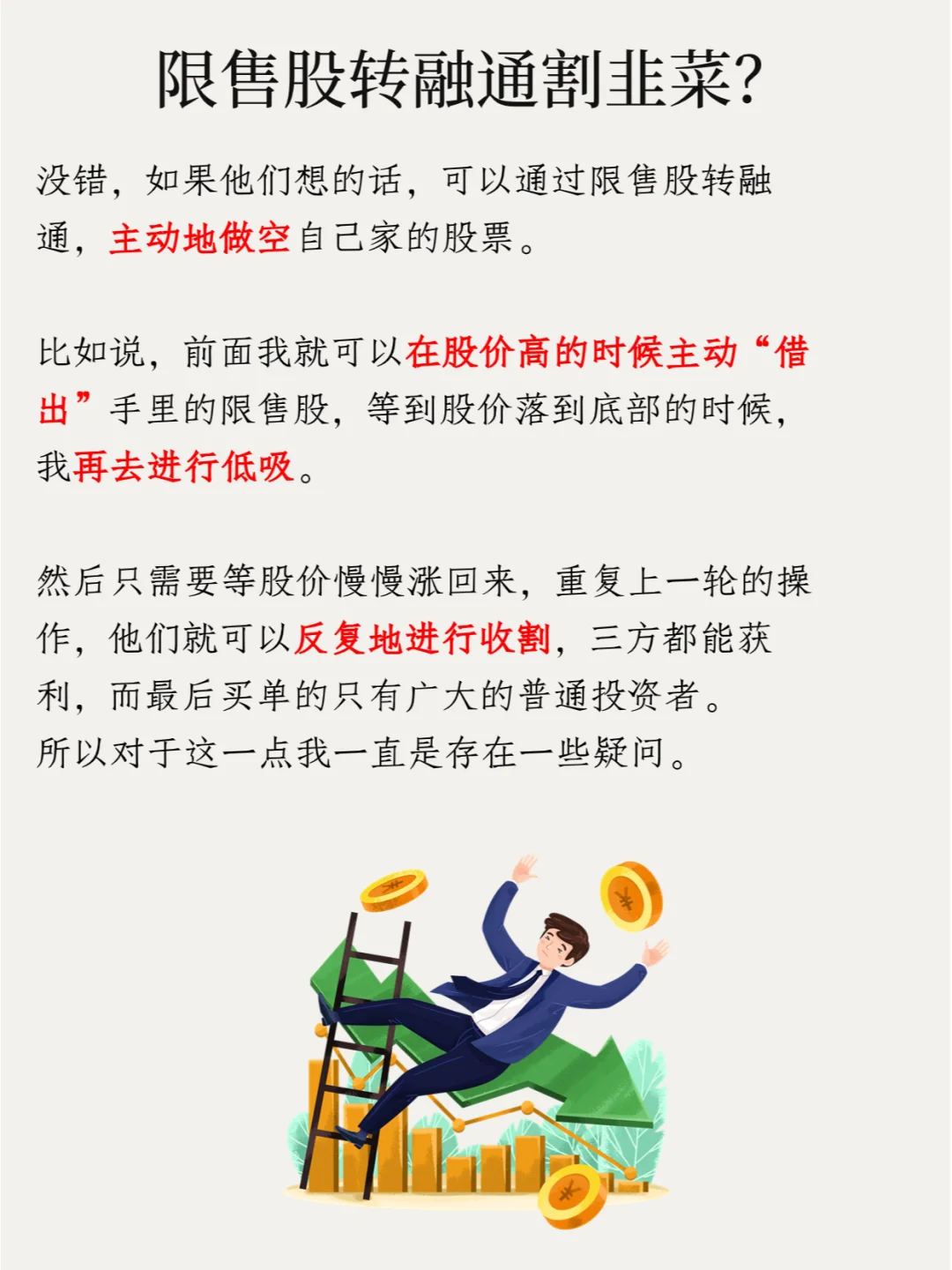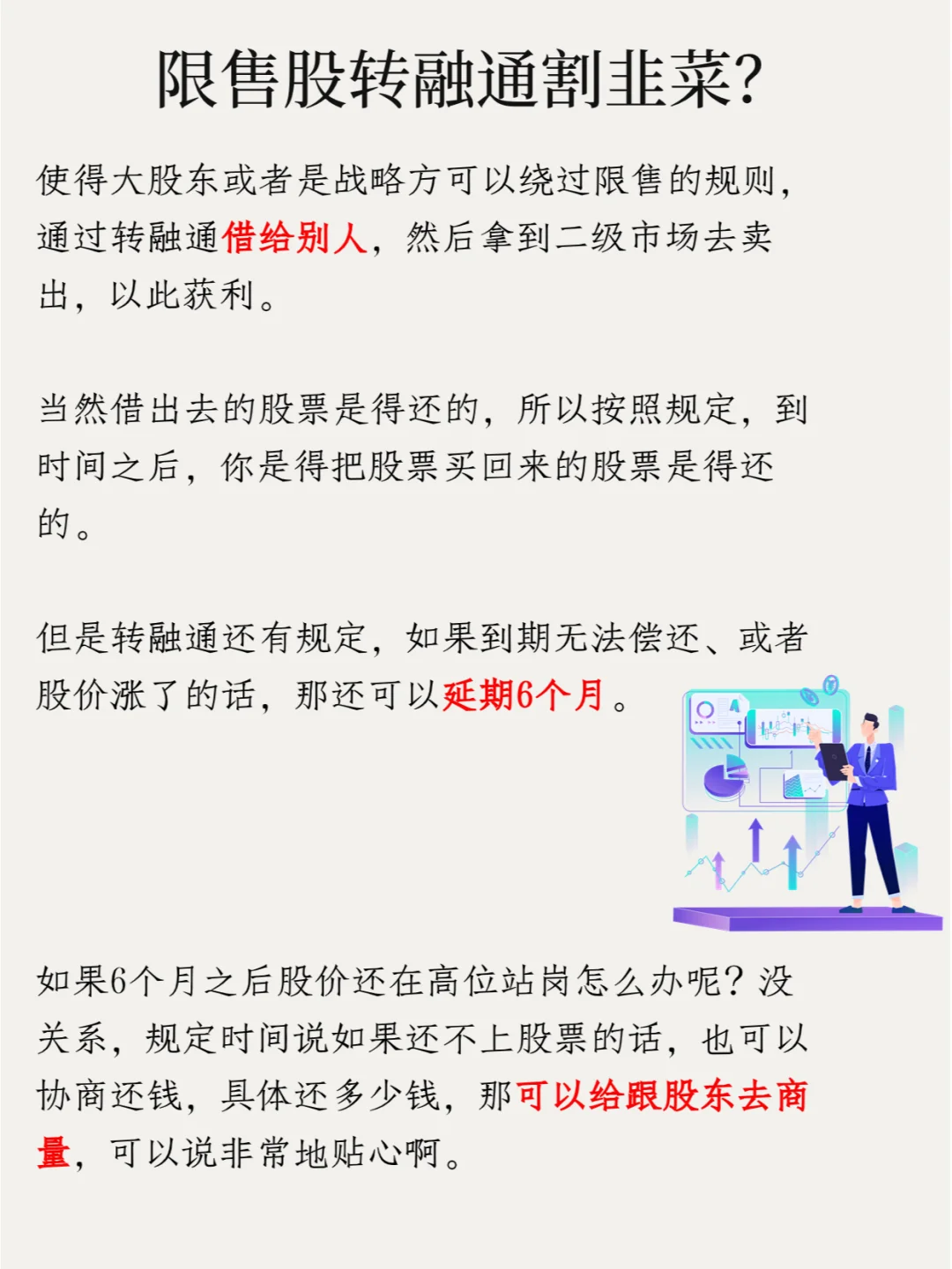 但是转融通又提供了一个可以融券间接卖出的渠道。使得大股东或者是战略方可以绕过限售的规则,通过转融通借给别人,然后拿到二级市场去卖出,以此获利。