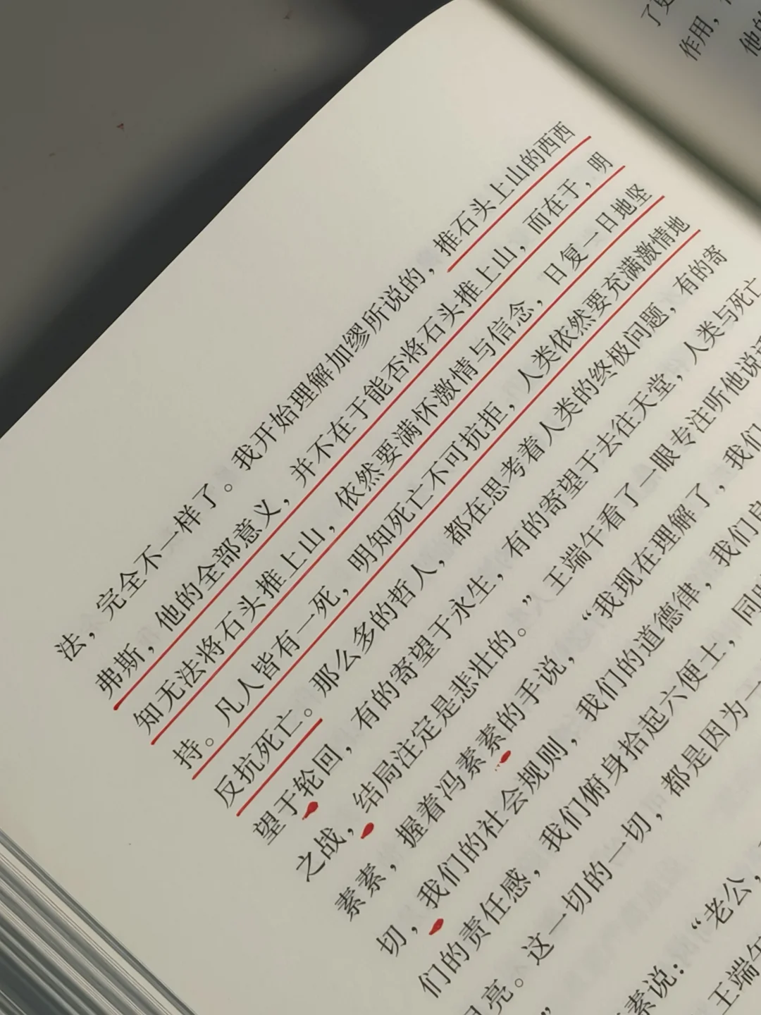 “你我皆凡人,我们都要死,面对这个在劫难逃的死亡,就像西西弗斯面对那块必将要再次滚落下山的巨石一样,我们究竟要拿生死之间的这短短的几十年怎么对待和度过呢?怎样的人生才是有意义的人生。”