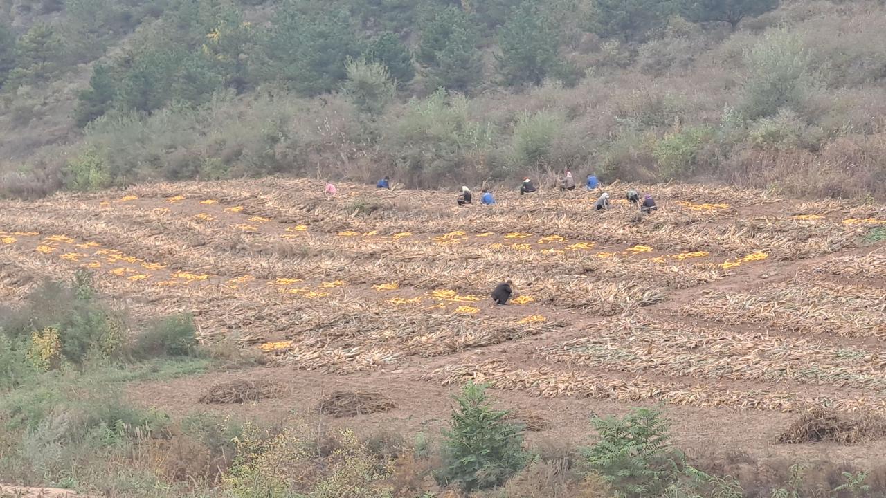 辽西地区庄稼开始大面积收割,朝阳市喀左县卧虎沟二布尺大面积粮食作物玉米开始收割,一天8小时管饭150元一天,不管饭是160元一天,看看今年比往年收成好,看看这苞米多好。