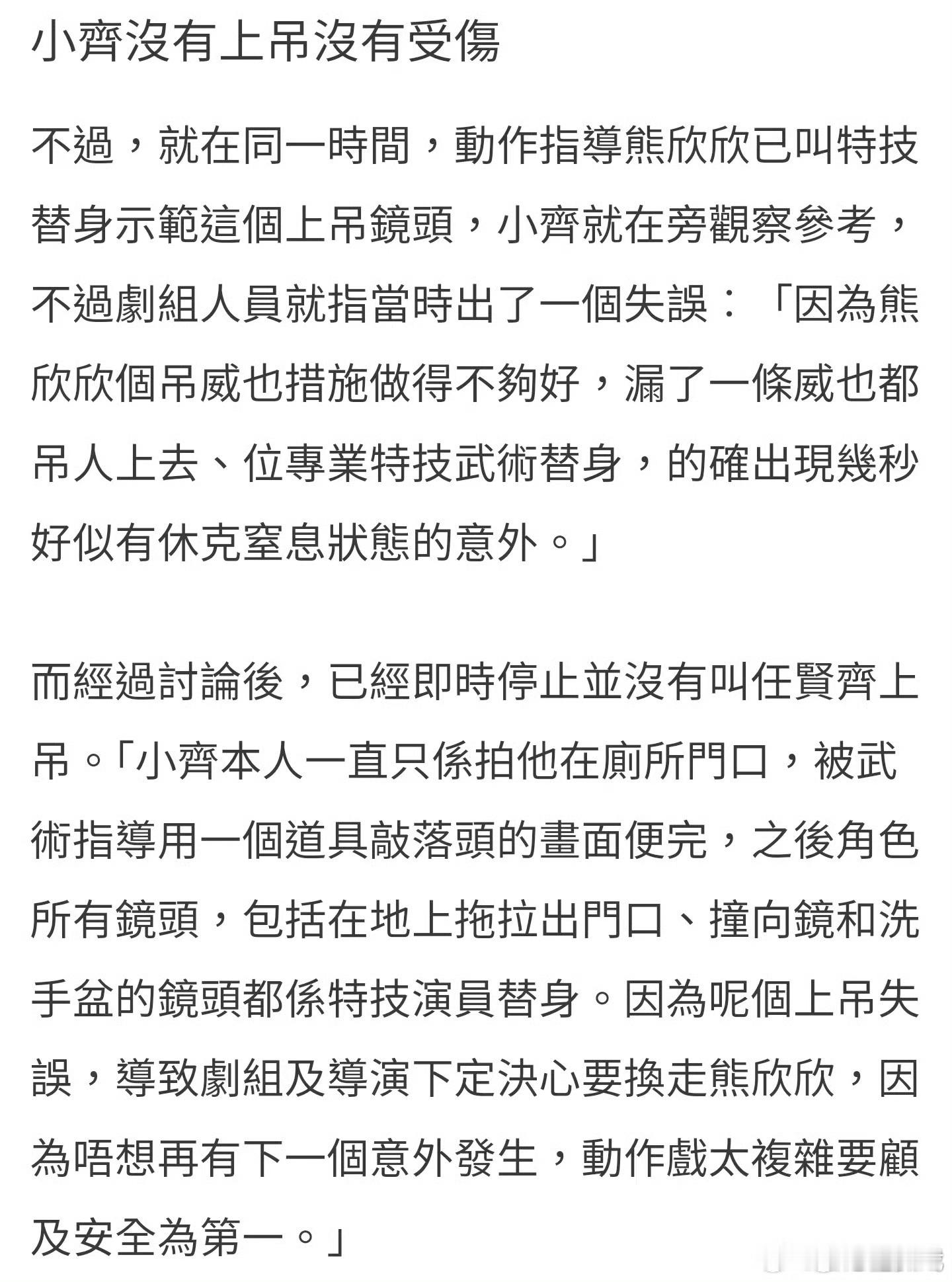 风林火山剧组人员回应争议 据港媒,《风林火山》机组人员回应网传争议。相关人员称任贤齐戏份完整保留,且剧组没有要求任贤齐补拍戏份。同时任贤齐也没有上吊没有受伤。