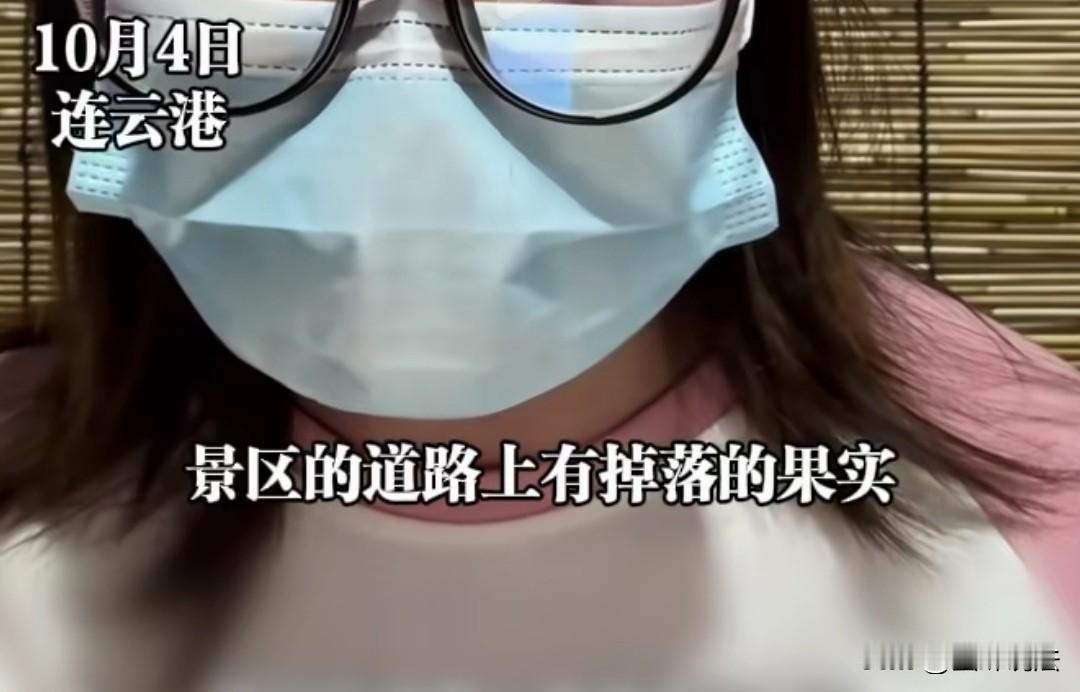 连云港,女子一家人在景区游玩,看见有掉落的板栗,因没有见过带壳的,出于好奇就捡起