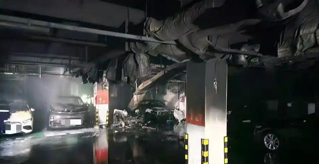该事故造成9辆汽车完全烧损、8辆汽车严重烧损,其中有多辆奔驰、宝马、奥迪等豪华车,其他部分汽车、公共设施设备等不同程度烧损烟熏,这次事故还是很严重的。现场一片狼藉,乌漆嘛黑,车主损失惨重。