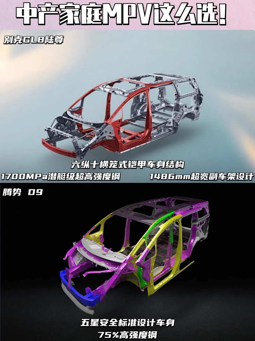 🔄腾势D9:混动专用刀片电池。75%高强度钢+超长侧气帘,保护安全