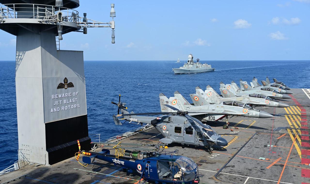 看看印度的航母,甲板看着怎么那么脏? 而且一眼就能看到甲板上停着3个国家的飞机,难怪是“东方大国”![看] 战斗机很明显是俄罗斯的米格-29K,那家小的蓝色的直升机没看错的话是法国的“云雀”,那家大的灰色的直升机则是印度自己的DHRUV。 什么叫“多元化”?印度这个就是。(战术后仰)[看]