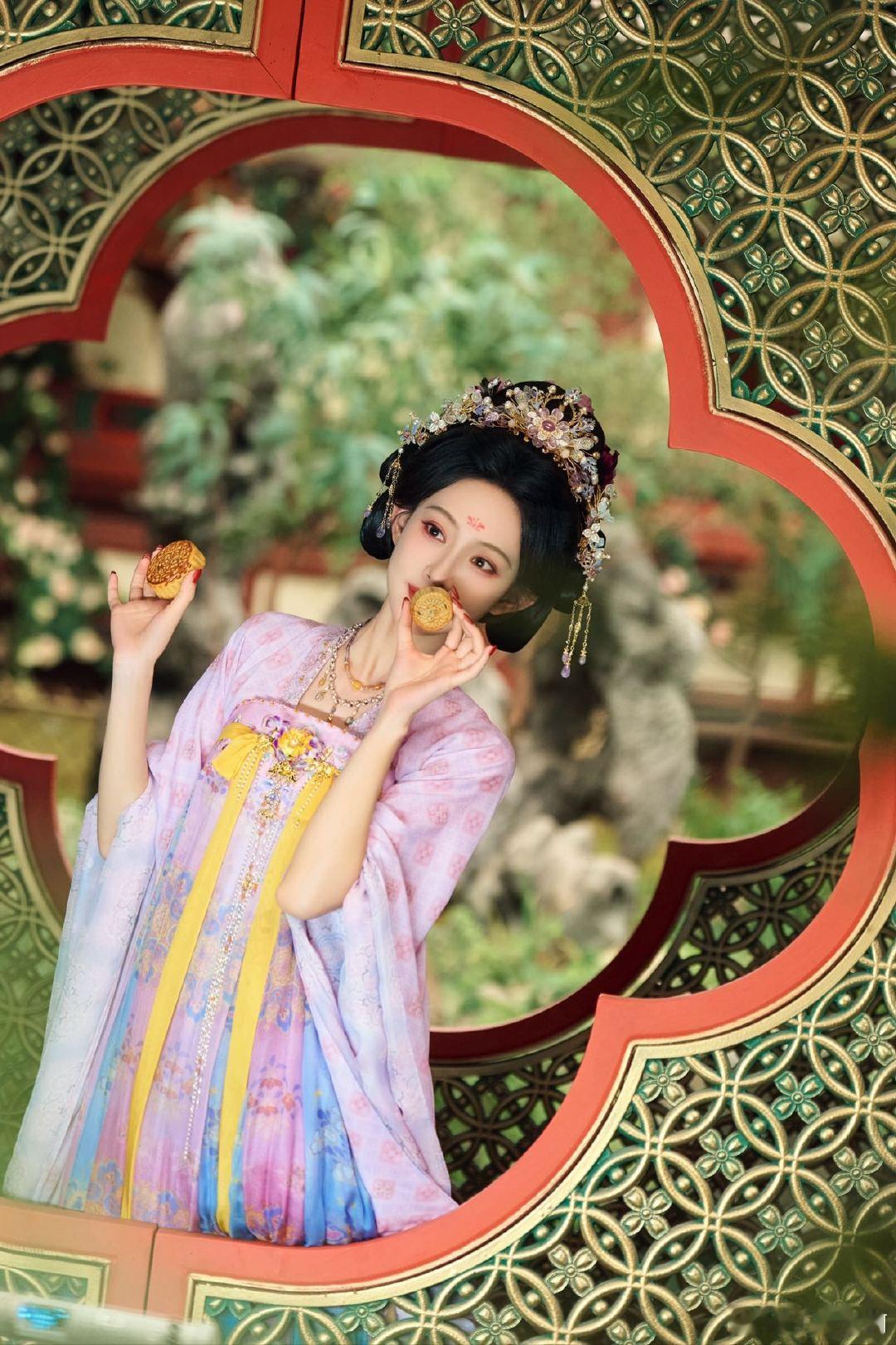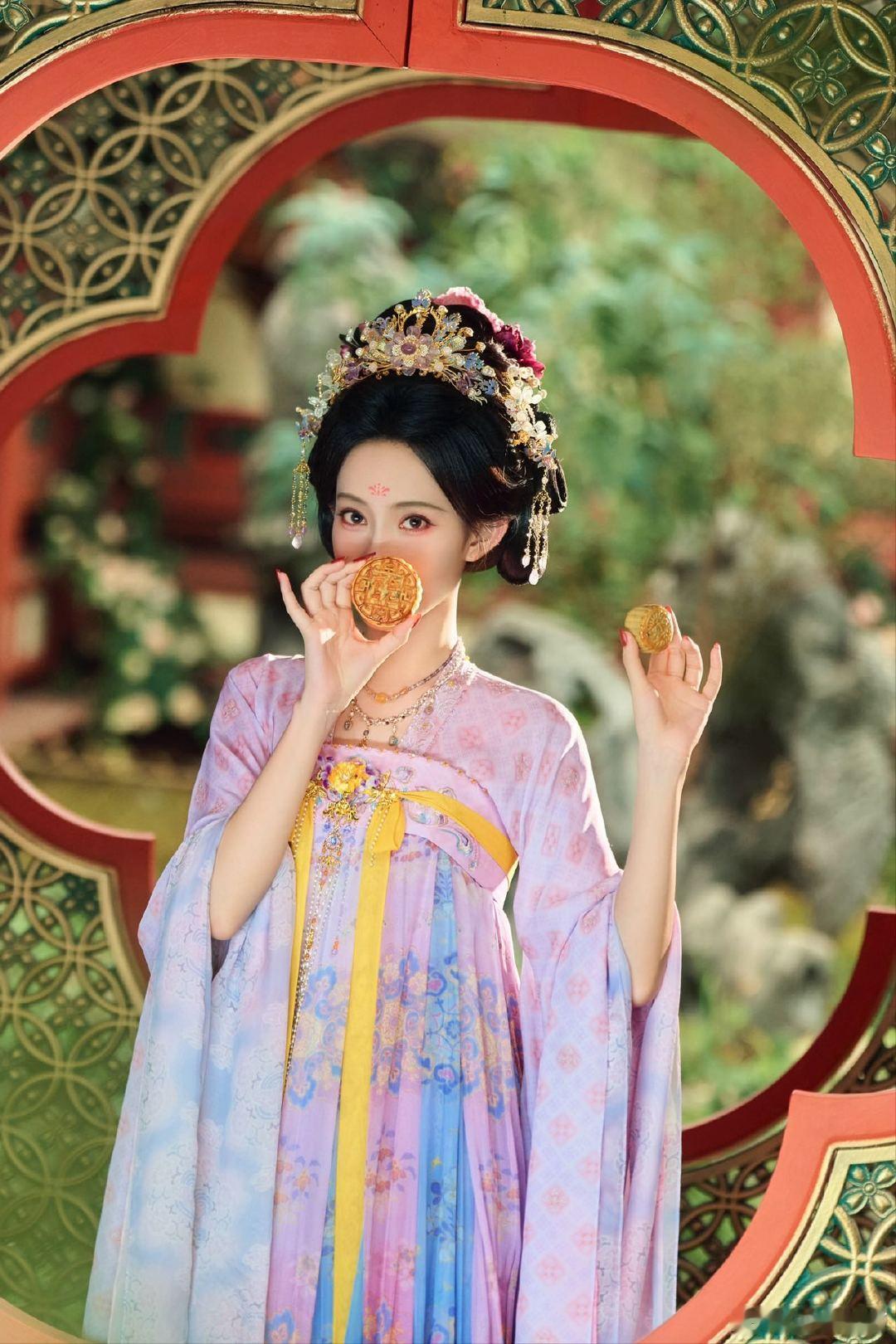 孟子义中秋节营业 孟子义的中秋古装照好灵动!淡紫长裙轻盈似蝶,发冠上的珠宝闪耀夺目,一颦一笑都充满古韵,这颜值和气质,《尚公主》不火都难!孟子义分你一半月饼