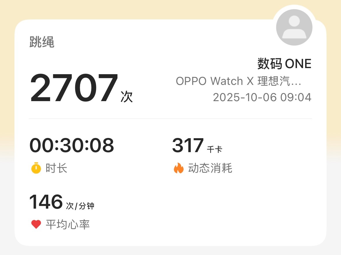 可能这两天没休息好,刚刚跳绳的时候手表突然提示心率过高,最高都到191了,吓得我