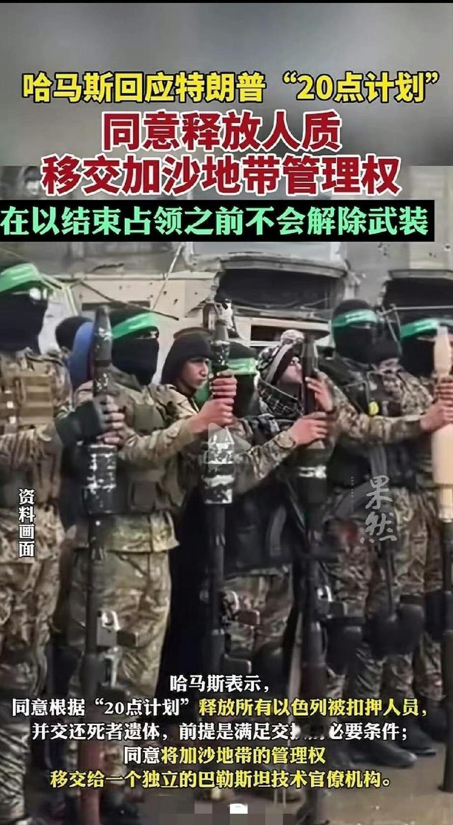 距离哈马斯“阿克萨洪水行动”两周年之际,哈马斯放下屠刀立地成佛,同意释放所有人质,交出加沙管理权,加沙人迎来久违的和平曙光。加沙人的代价太大,几万人的死亡,加沙北部已经变成废墟。 鹬蚌相争渔翁得利。特朗普赢了,他的“20点计划”成了压垮哈马斯的最后一根稻草。特朗普10月10日应该可以拿下诺贝尔和平奖,加沙的重建特朗普的集团应该可以赚得盆满钵满。 哈马斯可以继续负隅顽抗,但是已经毫无意义,只是相当于绑架加沙人打游击,但是弹丸之地没有战略纵深,被消灭只是时间问题,哈马斯的骨干应该所剩无几。外部的埃及、卡塔尔、土耳其也应该给予压力,失去外部补给哈马斯应该支撑不了多久。 加沙的管理权应该是交给了政治上中立的“技术官僚委员会”,也就是政治极端的哈马斯从此退出历史舞台。