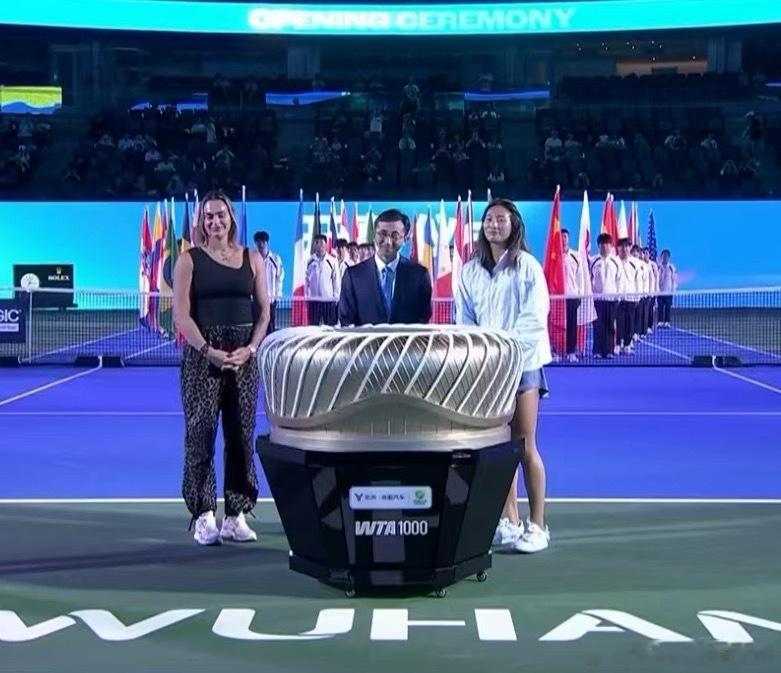 郑钦文和萨巴伦卡出席了武网开幕式