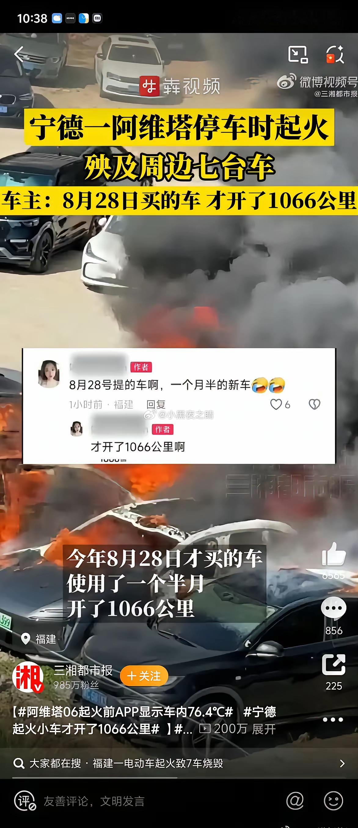 宁德自燃小车才开了1066公里阿维塔这个事故,一定要等官方调查后再说​​​