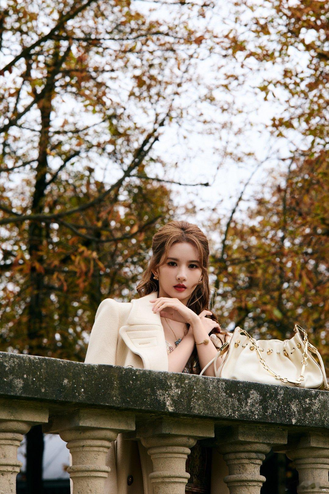 刘些宁秋日油画里走出的美人刘些宁巴黎时装周造型惊艳!复古印花长裙配落叶,宛如秋日