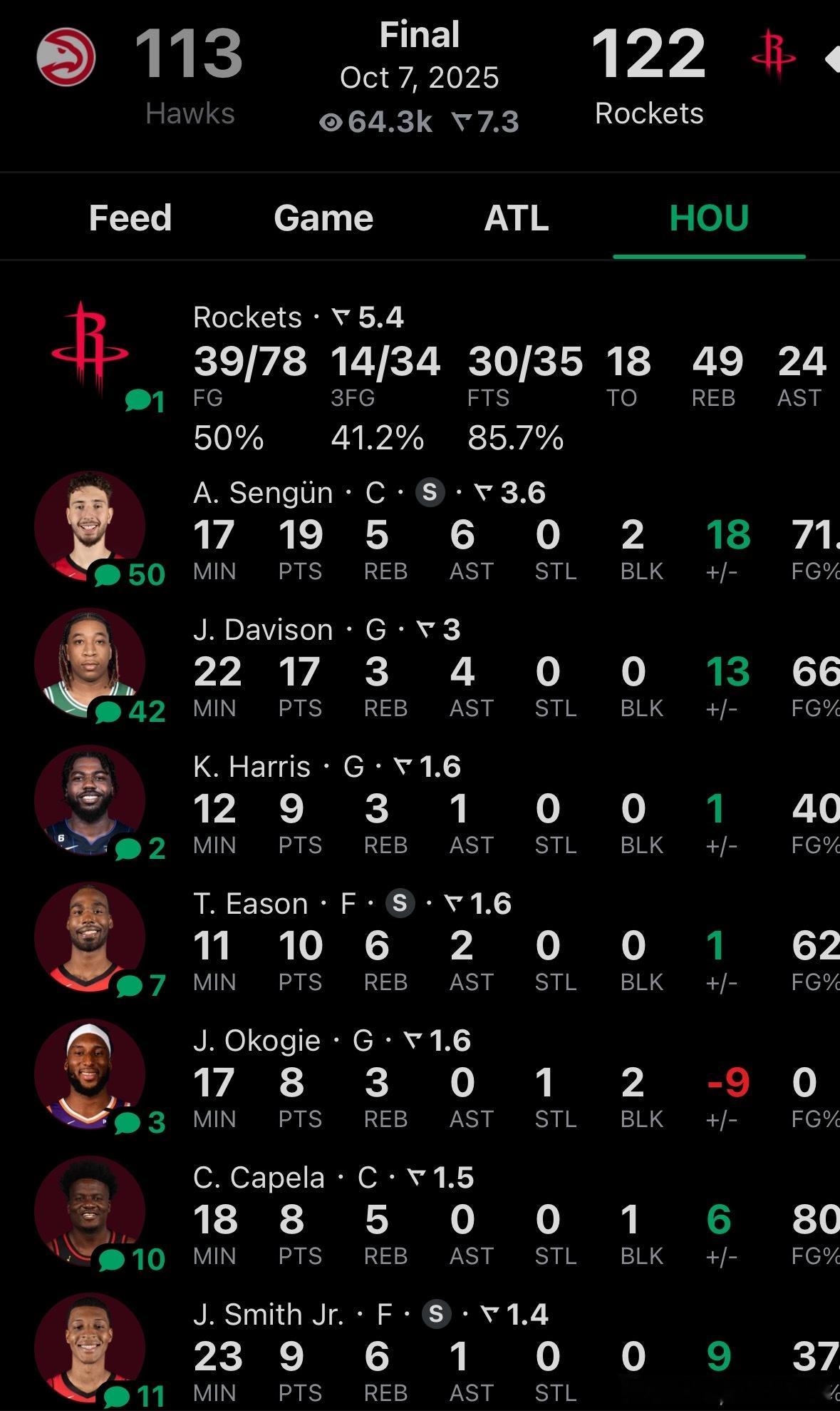 开门红!!!火箭主场122比113战胜老鹰🔥