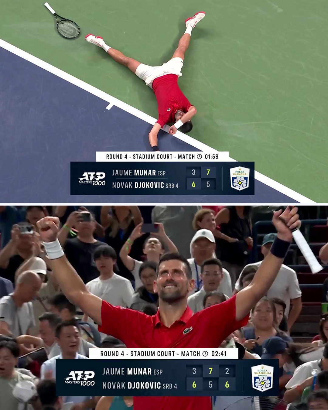 11次来到上海,11次至少进8强。38岁133天,超越费德勒19年在上海创下的最年长大师赛8强球员纪录(38岁60天)。97个大师赛8强,距离纳达尔的纪录,之差两次。