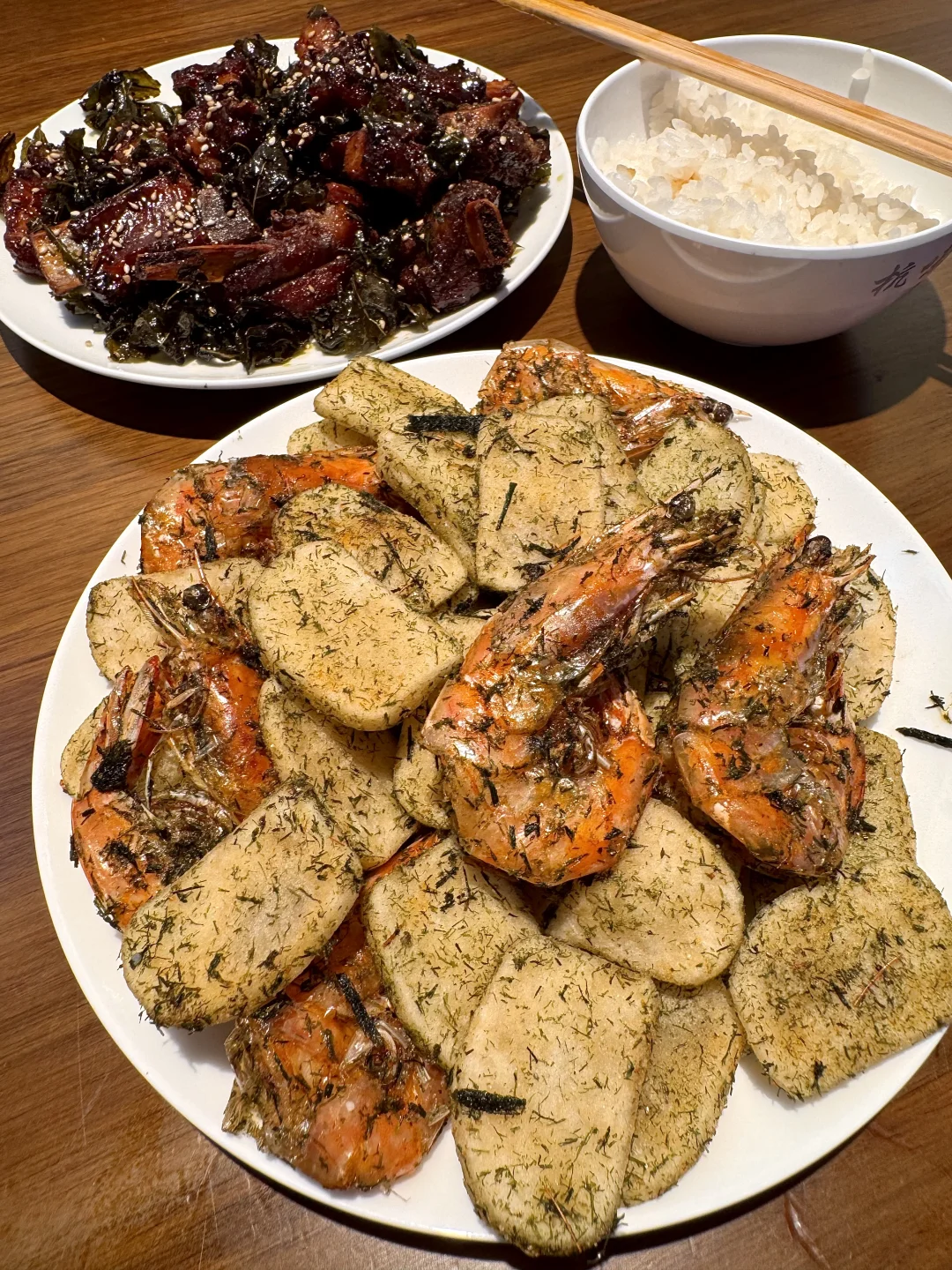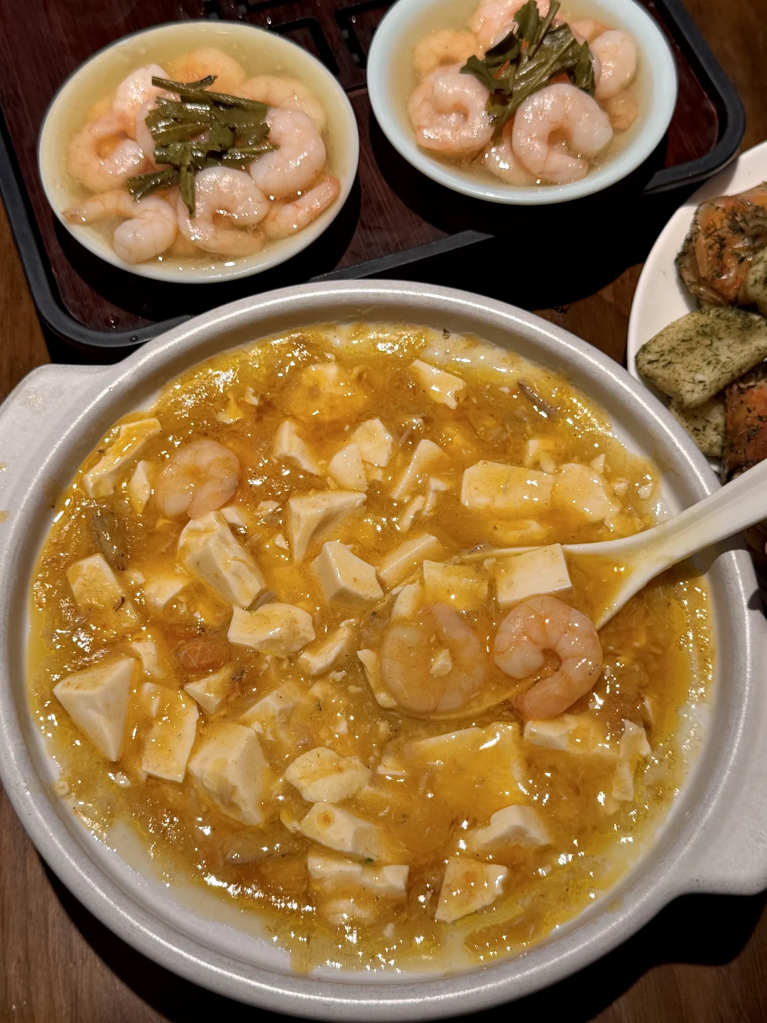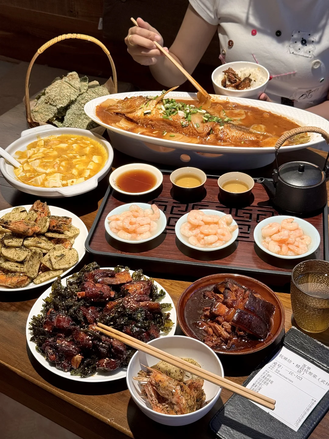 一个人来武林也会愿意吃的!! 苔条年糕虾+茶香排骨!年糕炒得外酥里糯,苔条香味很浓!排骨和虾香酥可口🤤怎么可以做的这么好吃! 还有芥菜炒年糕、龙井虾仁、蟹黄豆腐…鲜到掉眉!一吃一个不吱声(叫:杭味坊