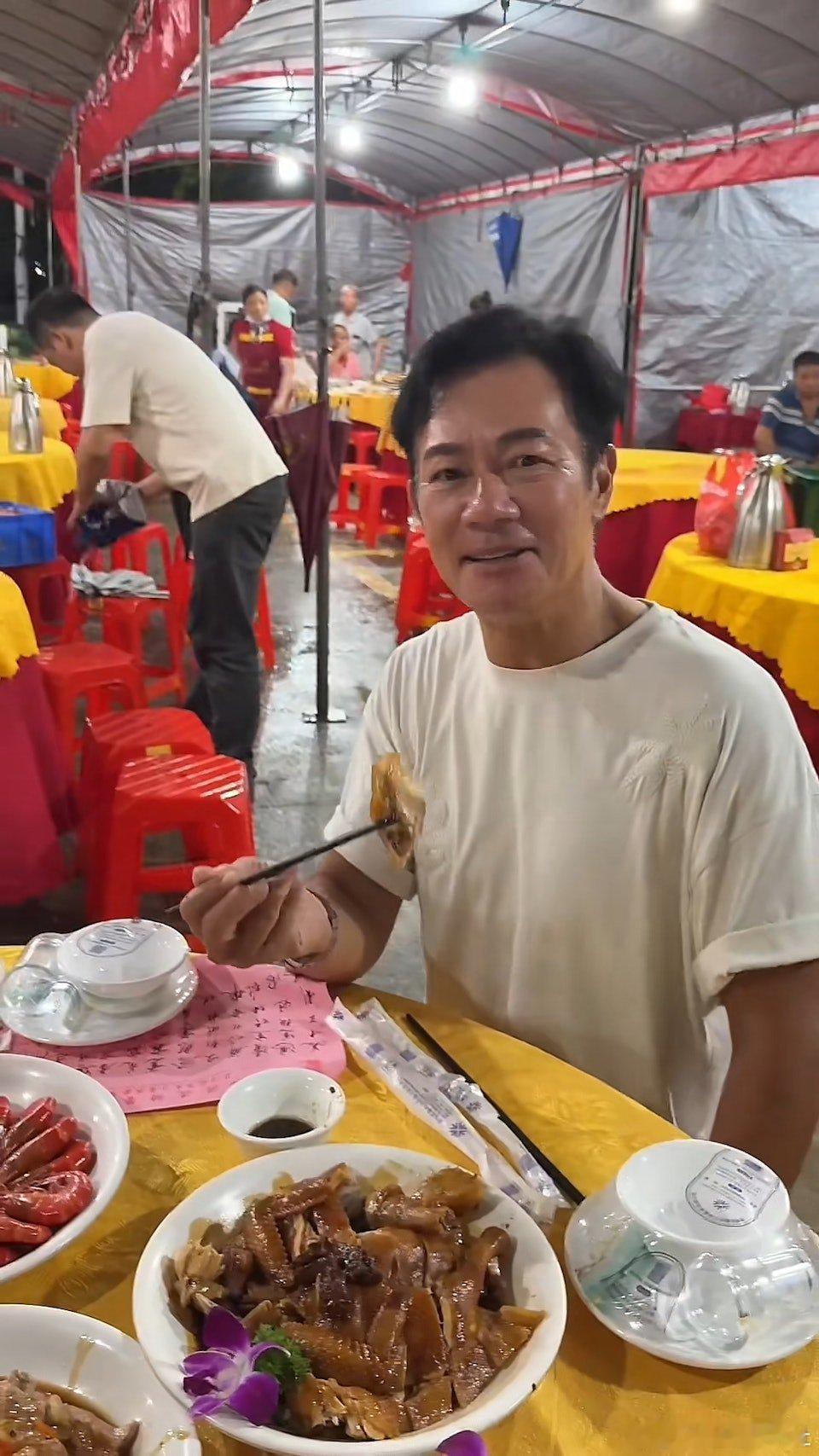 近年積極經營社交平台、愛拍片分享日常生活的張兆輝,日前回鄉下佛山出席喜宴,並拍下現場盛況,他寫道:「開車三小時就為了返佛山我鄉下張氏大宗祠堂,參加婚宴、就是喜歡這歷史悠久的這人間煙火味。」