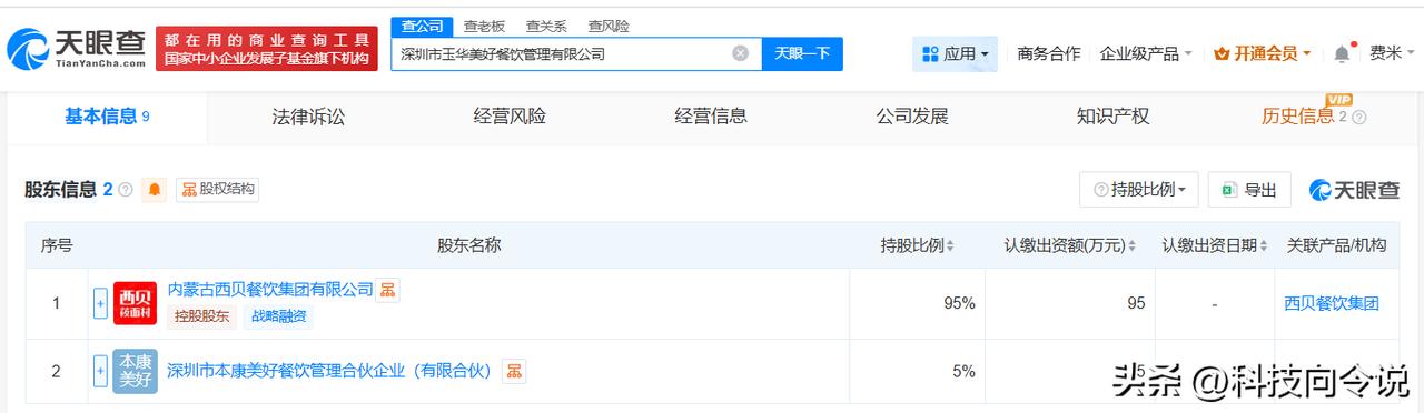 【西贝旗下新公司叫玉华美好西贝等投资成立玉华美好餐饮管理公司】 天眼查App显