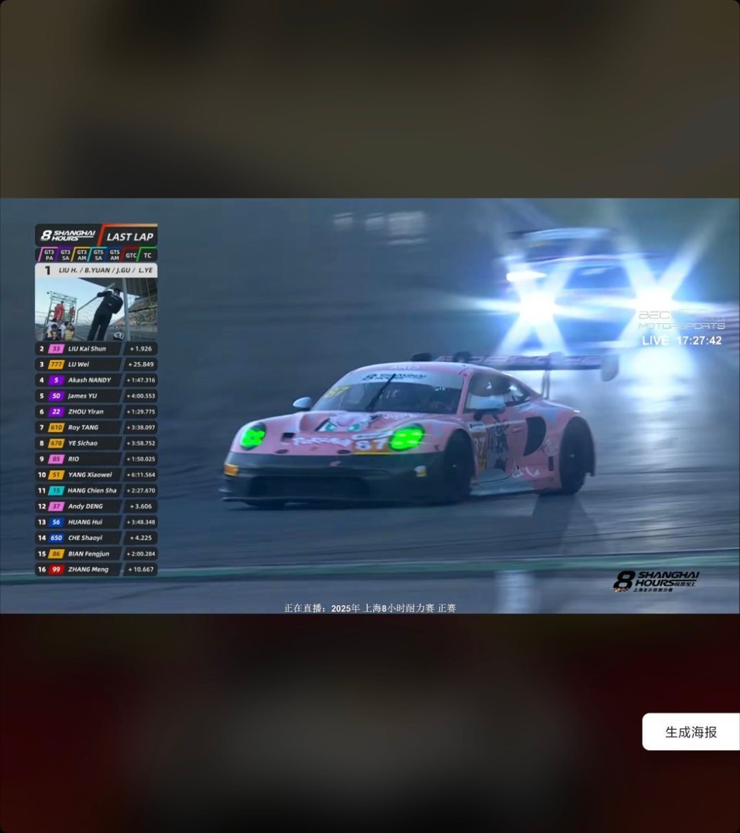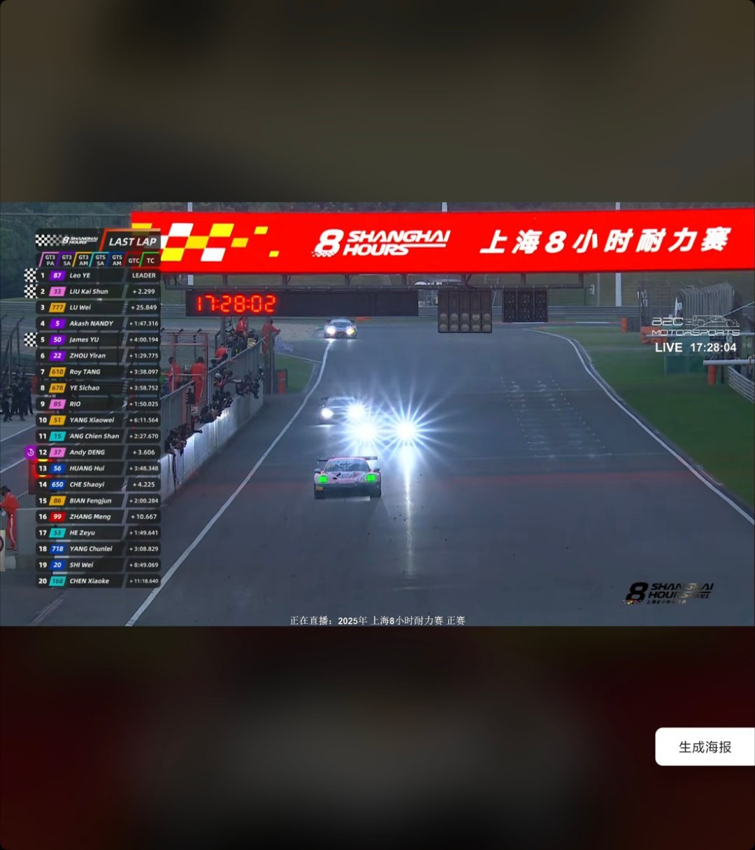 拿下上海8小时GT赛车耐力赛全场冠军!