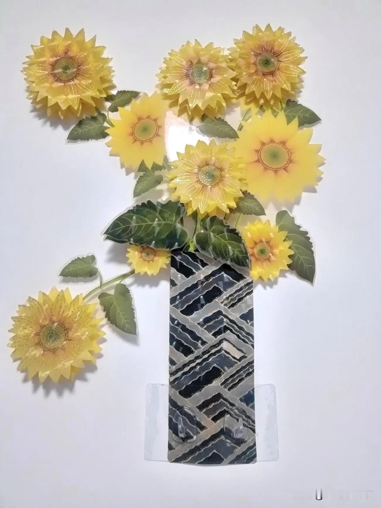 向阳而生的生命之花 这一束向日葵,如阳光的使者,在别致的花瓶中肆意绽放。 明黄的花瓣是希望的底色,层层叠叠,似在诉说生命的热忱;翠绿的叶片鲜活欲滴,为这抹黄添了几分灵动。 它们不似温室花朵那般娇弱,反倒带着一种向阳而生的倔强,将蓬勃的生命力肆意铺展。 这簇花,是对生活的礼赞,是在平淡日常里注入的一束光,提醒我们要如它一般,永远朝着光亮,热烈而勇敢地生长。