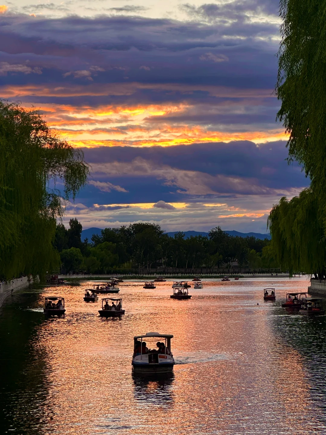 ❺夏天很晒,建议下午三四点到,边逛边吃边拍,晚上还能邂逅一场浪漫的什刹海日落🌅