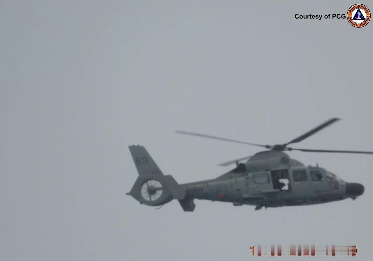10月8日中国黄岩岛国家级自然保护区东南方约32海里位置,中国海警3302、3303舰、中国海警21562艇等正对菲律宾海警4408艇、渔政3003、3004和渔业指导船等进行拦截管控。 升空的中国海军直-9舰载直升机在仙宾礁附近低空盘旋,人民海军054A型导弹护卫舰568衡阳舰在黄岩岛以东再次以无线电警告方式公告了实弹演习警示区,菲船完全不敢逾越。 仙宾礁附近的菲渔政船正疑似转进我被占的中业岛,不知道后续会否在我铁线礁一线闹事,我黄岩岛外围的菲船截至目前凌晨1时许也没离开,这是要过夜了。