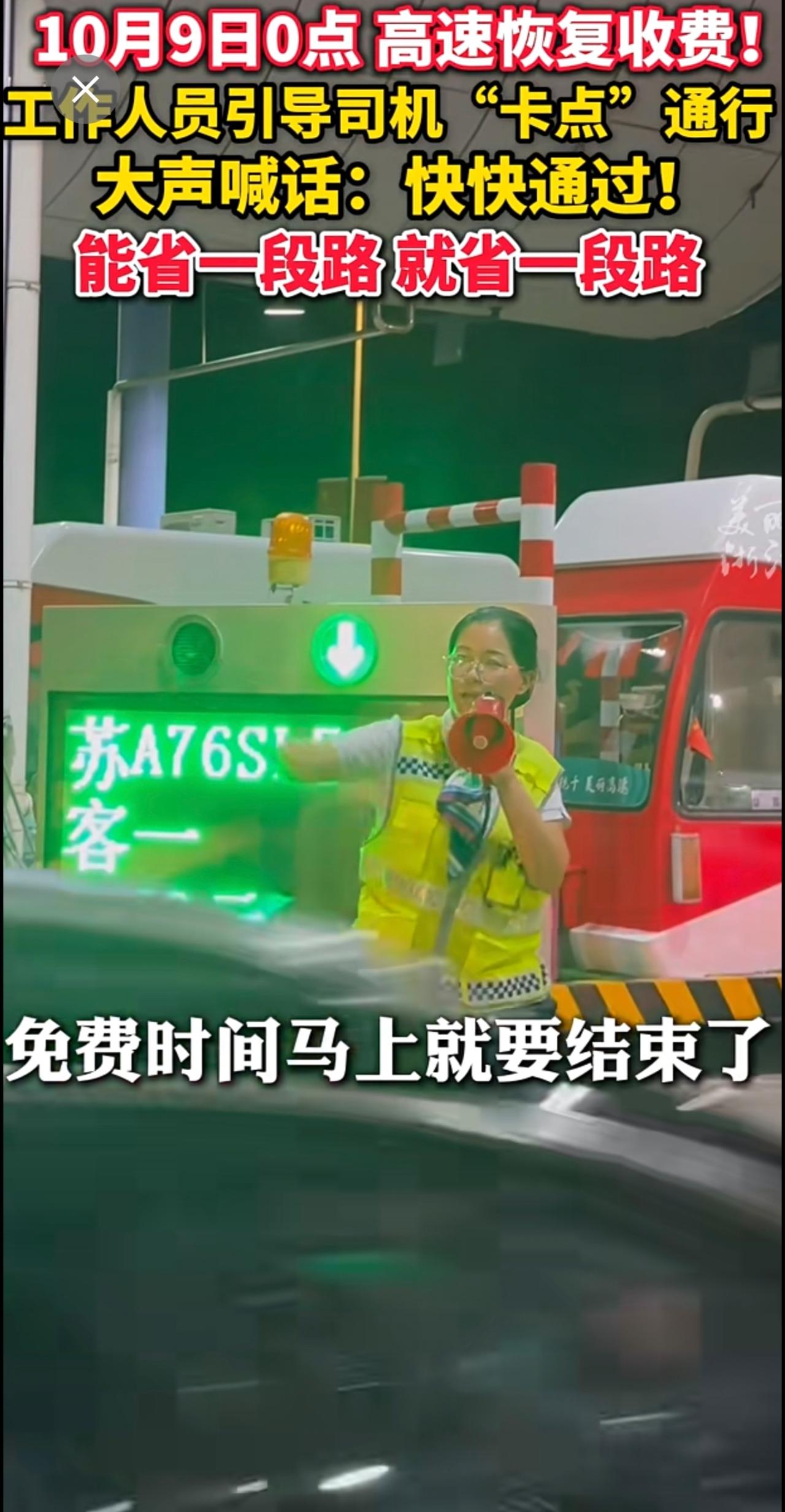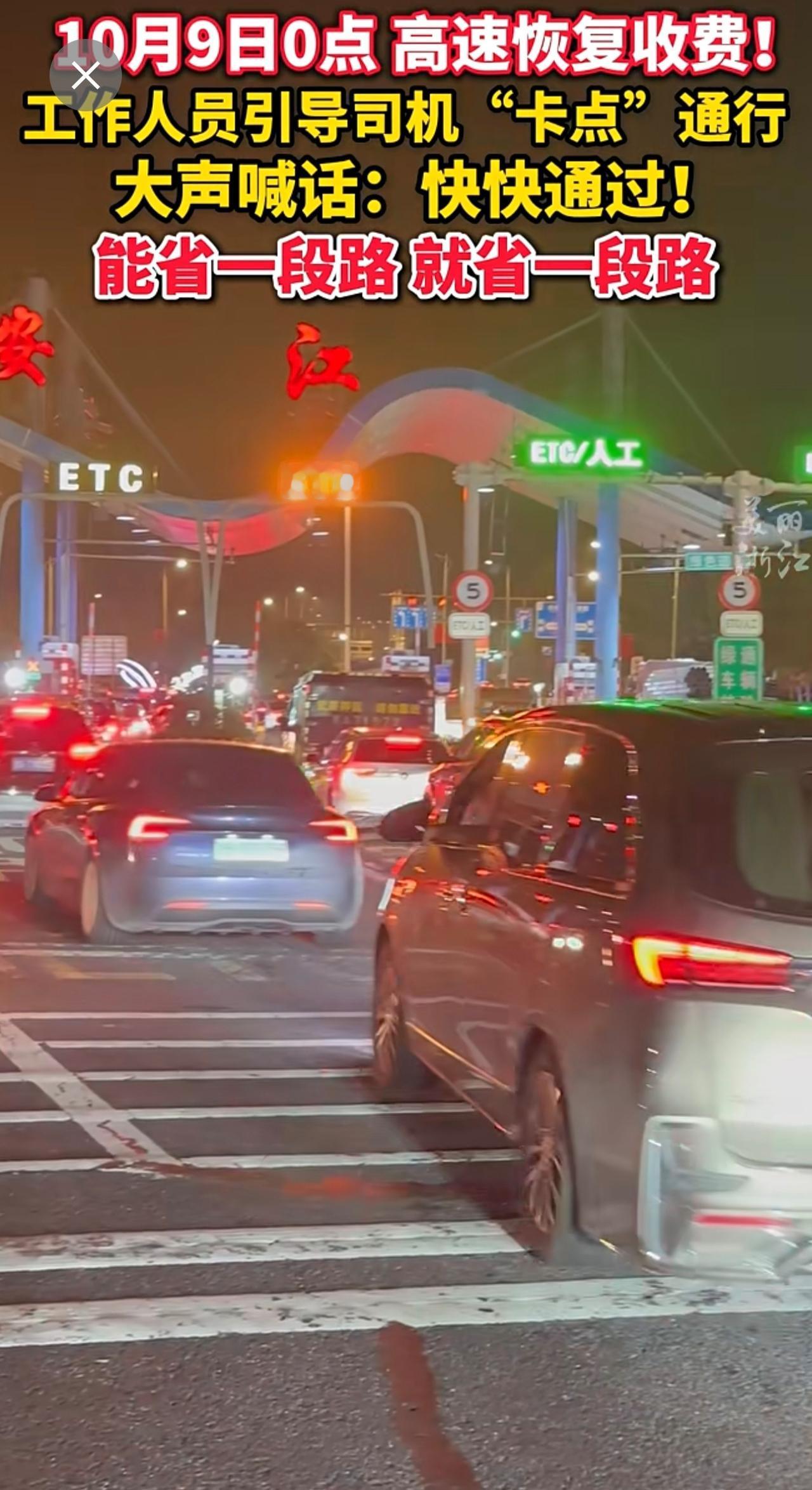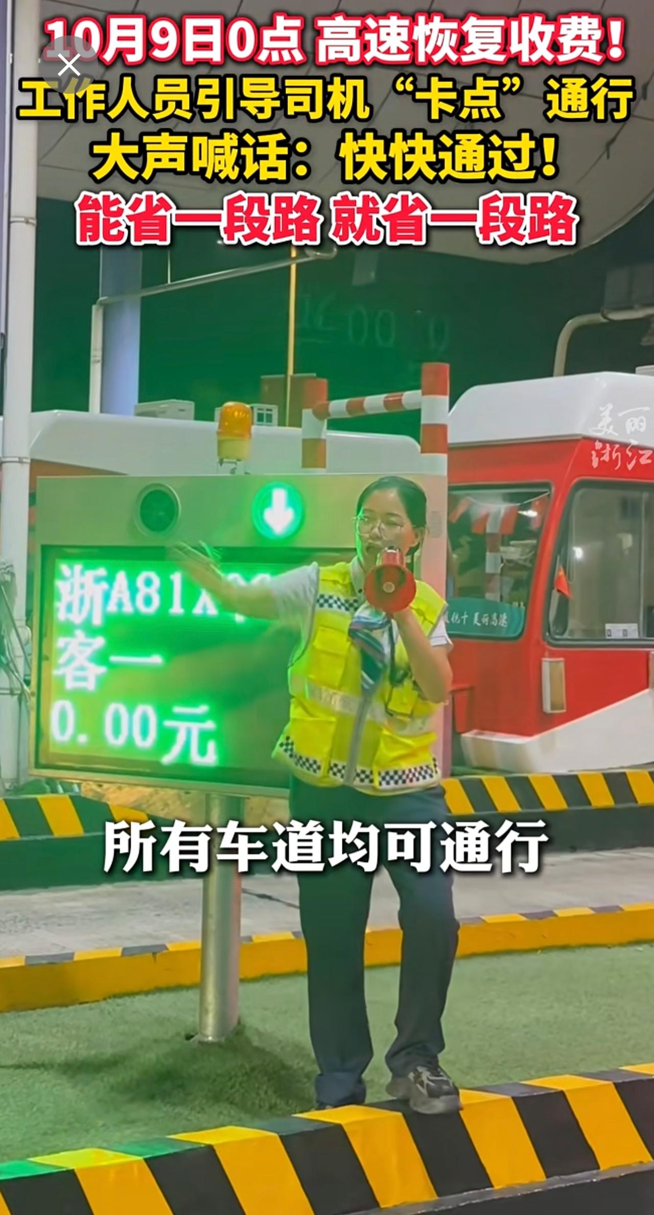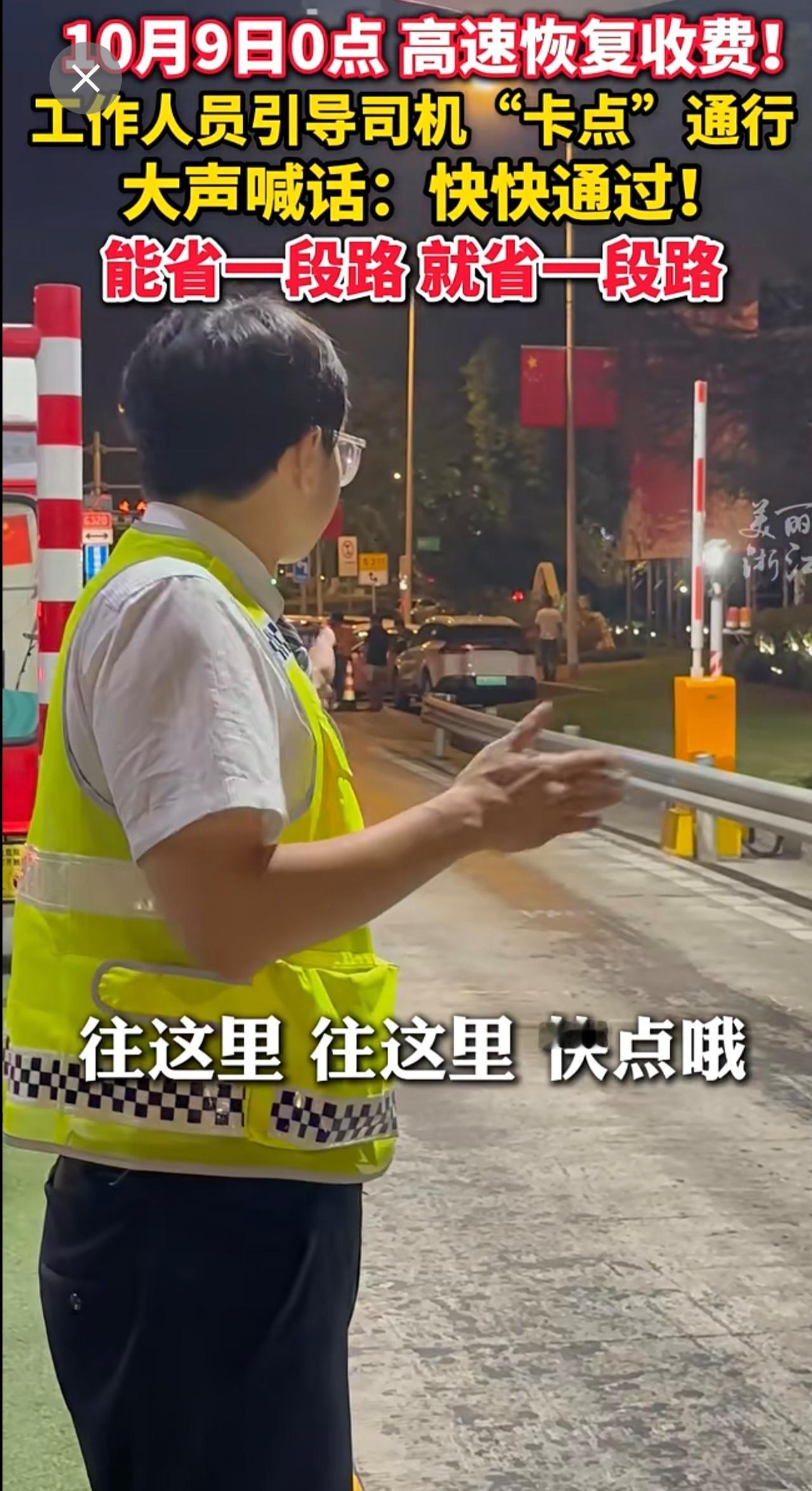 10月9日0点,高速免费通行时间结束!收费站工作人员指挥车辆快速通过省路费 主打一个“速度与激情”(供稿:杭州交投杭千高速)