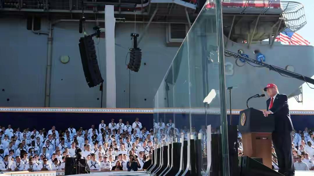这两天,“两周先生”“特不靠谱”懂王川建国特朗普,躲在防弹玻璃下阅兵,检阅海军。