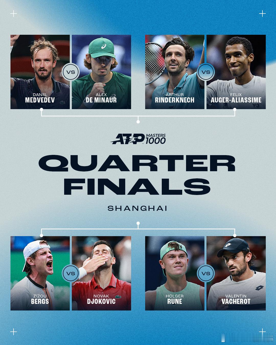 八强全部产生,四分之一决赛对阵👇梅德维德夫[16]vs德米纳尔[7]林德