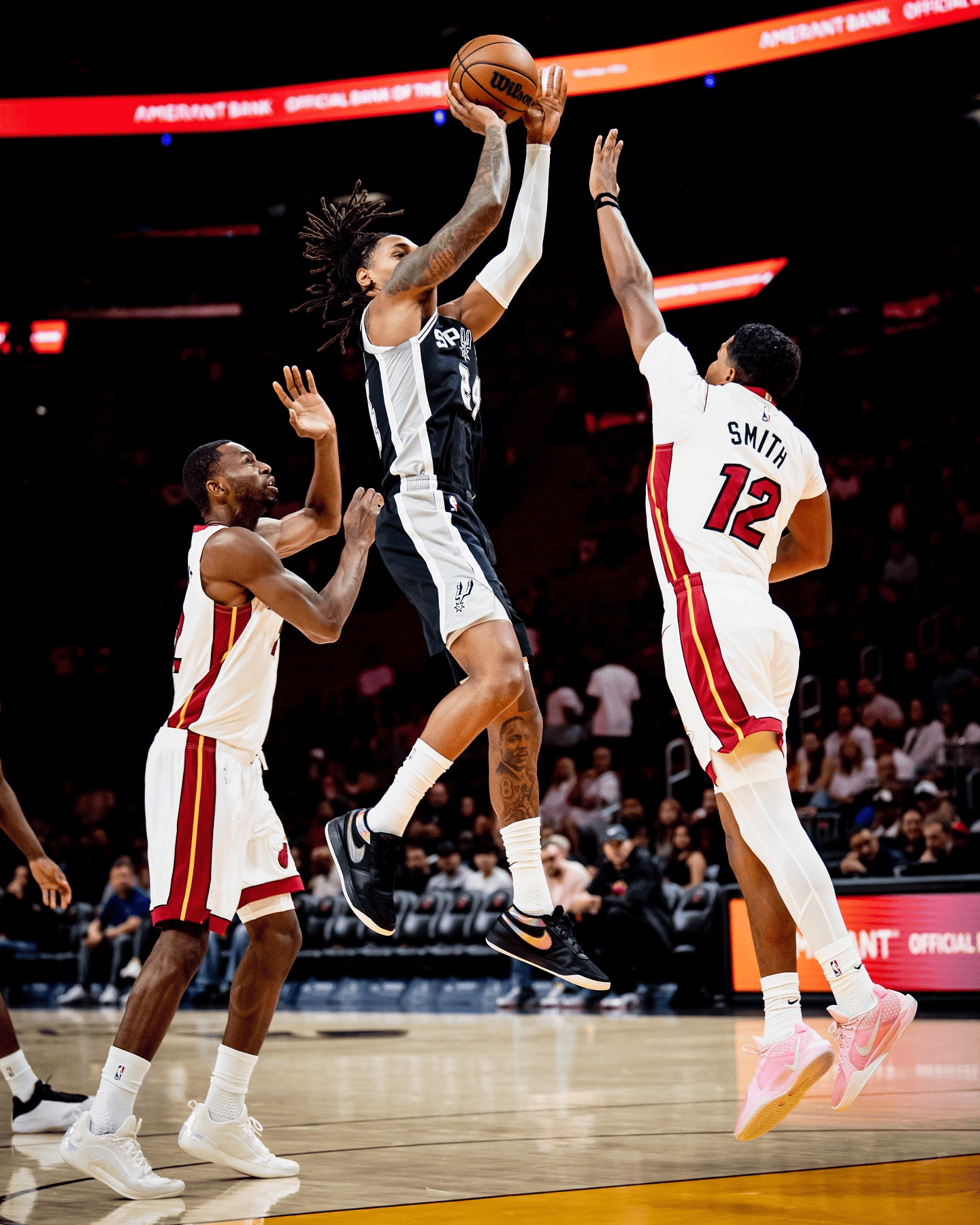 虎扑10月09日讯马刺官方更新社媒,分享对阵热火赛场照。