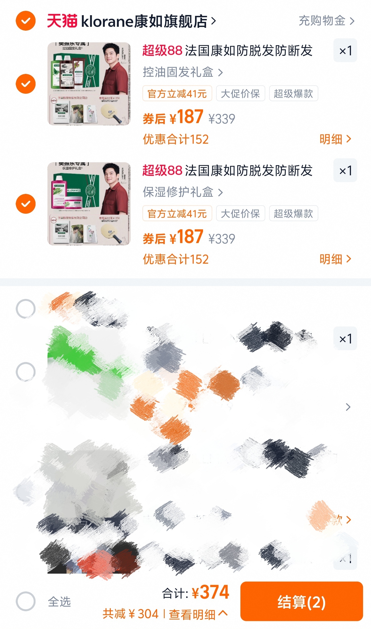 我去,两套一起374[憧憬]店铺自动减的!