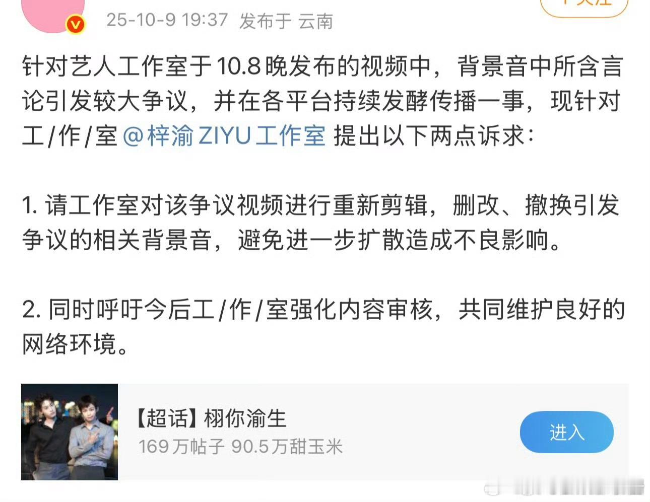 栩你渝生粉丝向梓渝工作室提出诉求,怎么看?