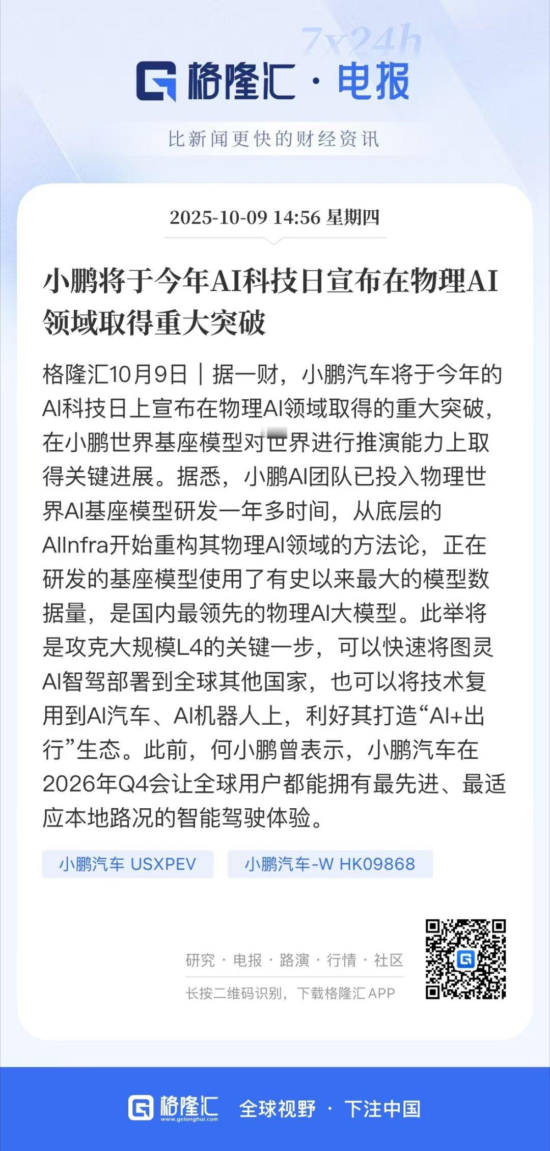 我鹏今年的AI科技日直接开始预热了,宣称自己在物理AI方面有了重要突破。正在研发的3.0基座大模型用了非常庞大的数据量,是国内目前比较领先的物理AI大模型。