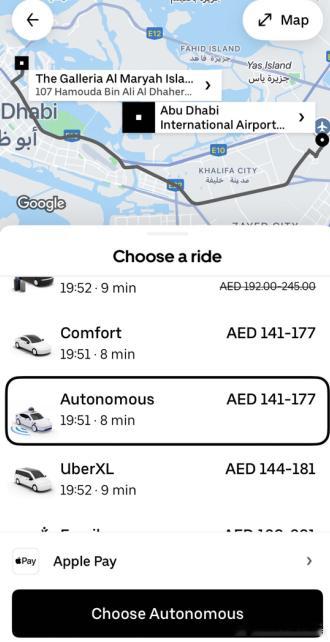 Uber今天首次在全球范围内推出「Autonomous」自动驾驶专属选项,文远知行第一家入驻。目前这项服务已经在在阿联酋首都阿布扎比运营。