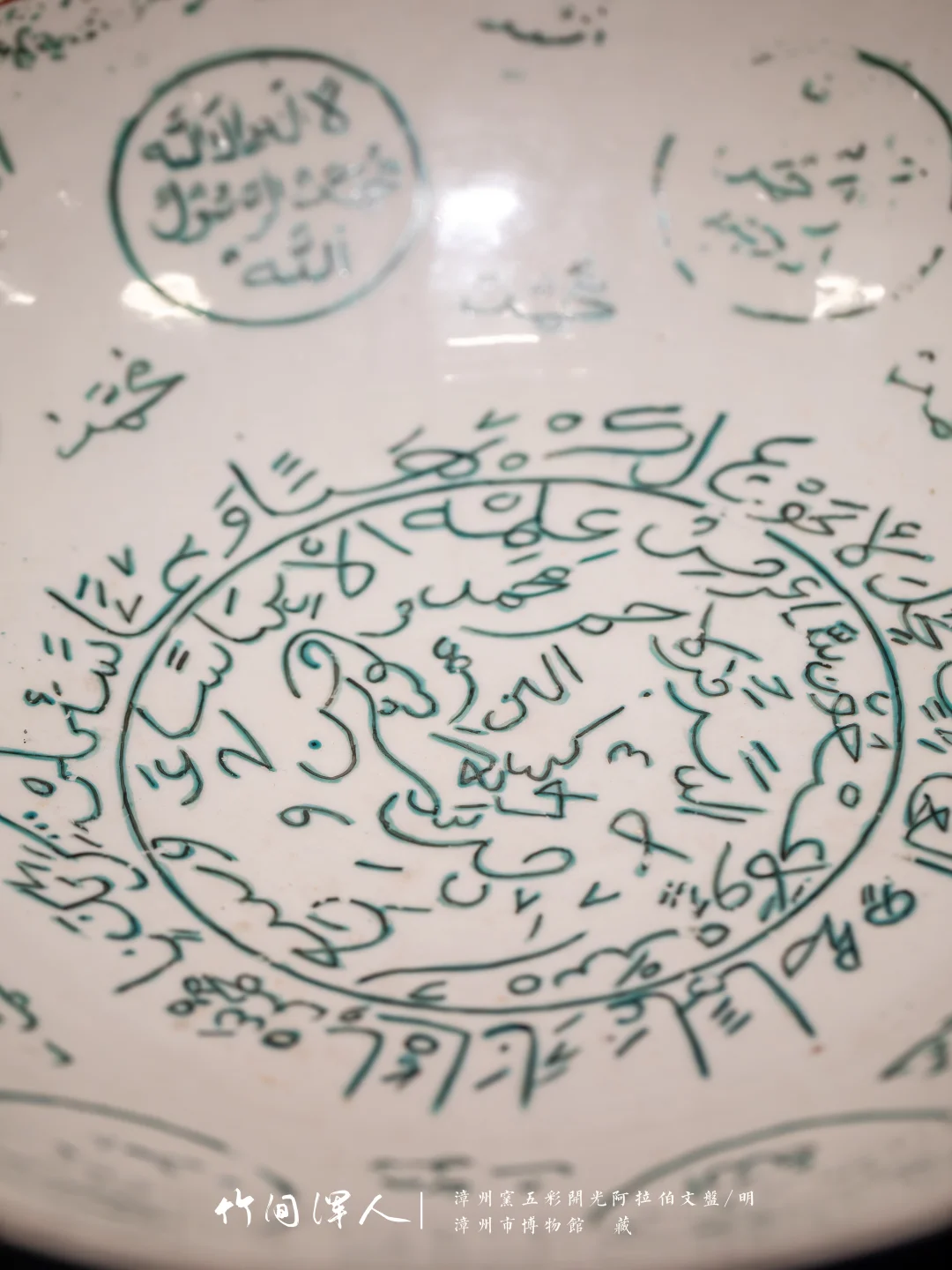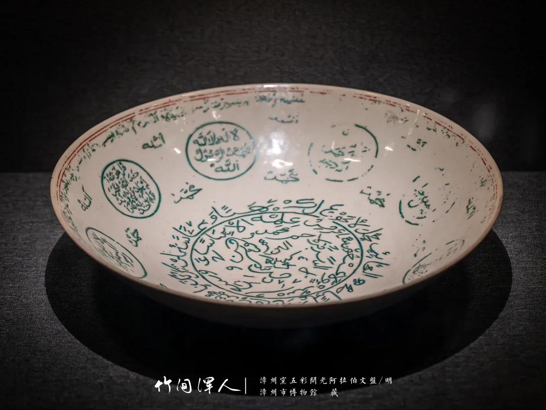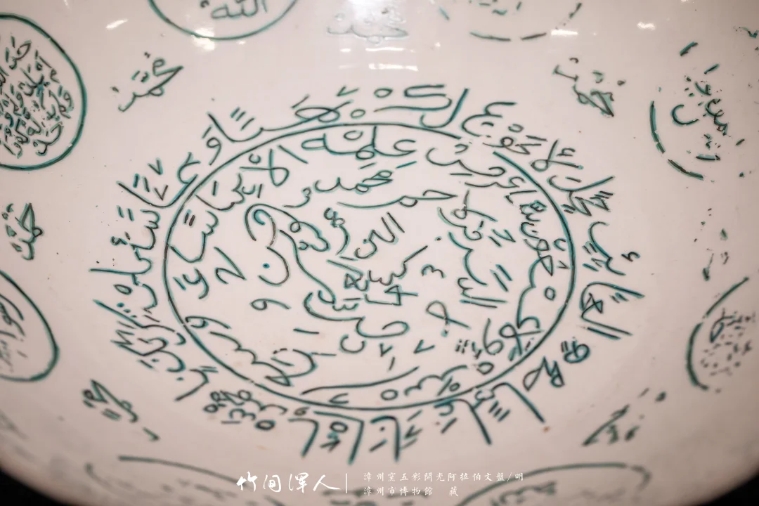 藏于:该盘为漳州市平和县南胜窑址产品。盘上的阿拉伯文字内容为《gulan经》中的警句与赞美先知穆罕默德的真言,是漳州窑瓷器中yisilan文化元素的重要物证。《gulan经》是yisilan教的经典,7世纪阿拉伯半岛统一后,阿拉伯文字成为《gulan经》所使用的文字体系。13世纪中后期yisilan教传入东南亚并得到发展传播,漳州窑生产了大量适应伊斯兰民众生活需求的瓷器,真正反映了文化因交流而多彩,文明因互鉴而丰富。