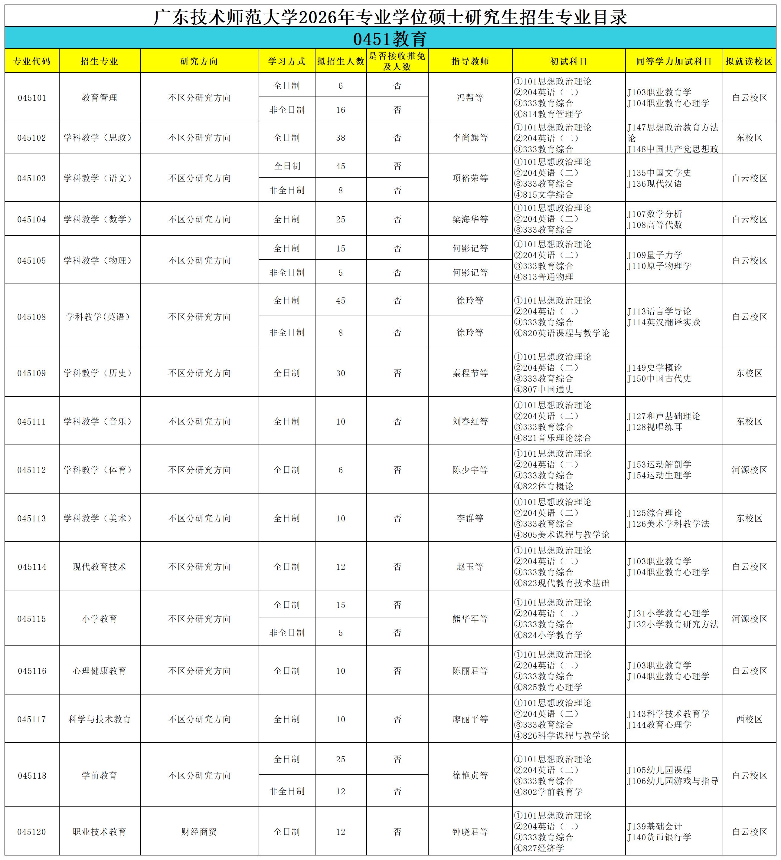 广技师公布26研究生招生专业及招生人数。广东技术师范大学2026年学术...