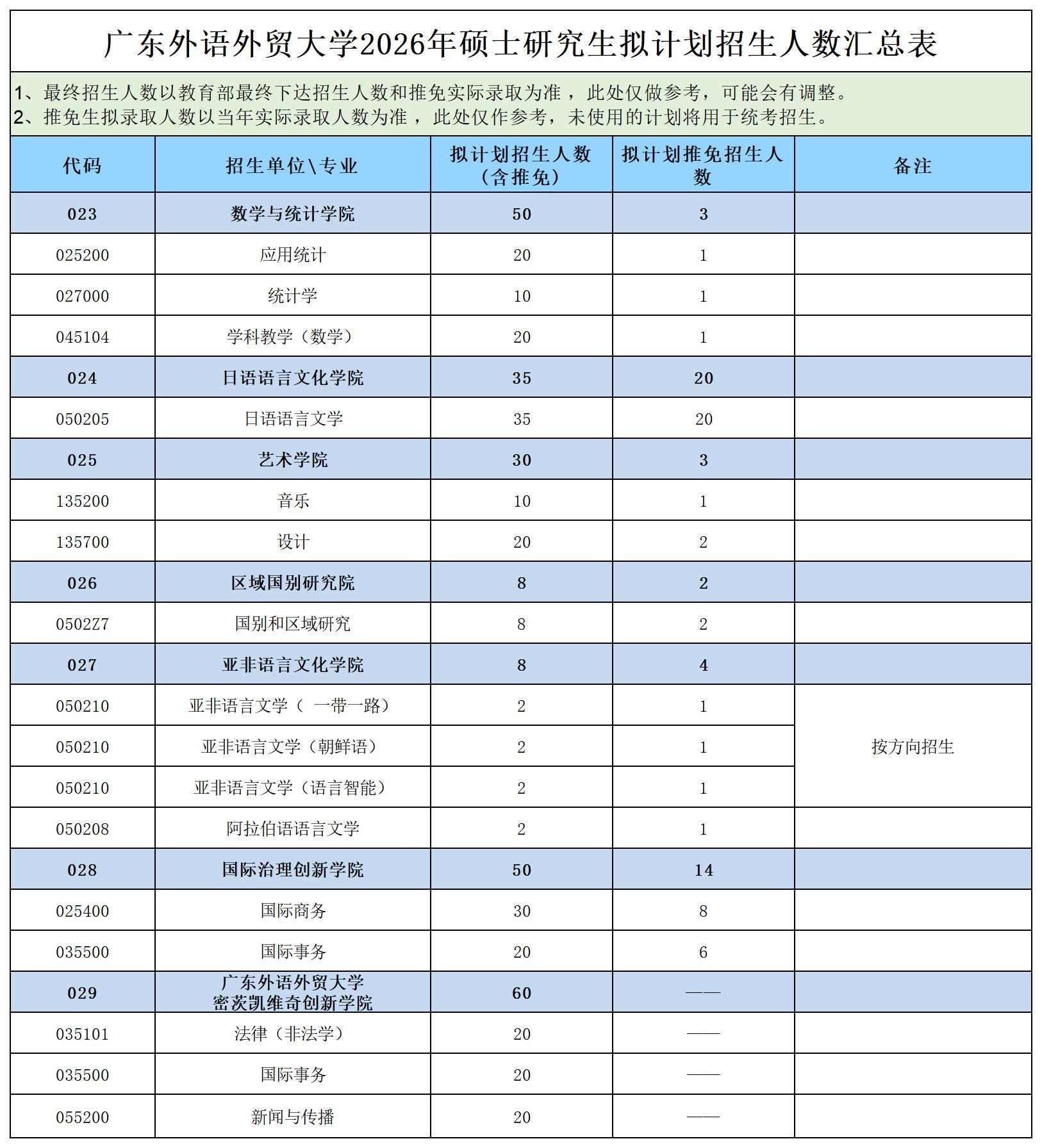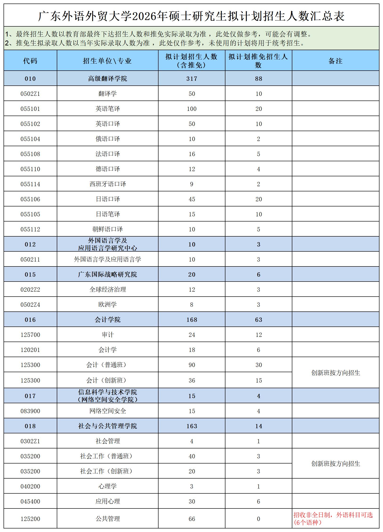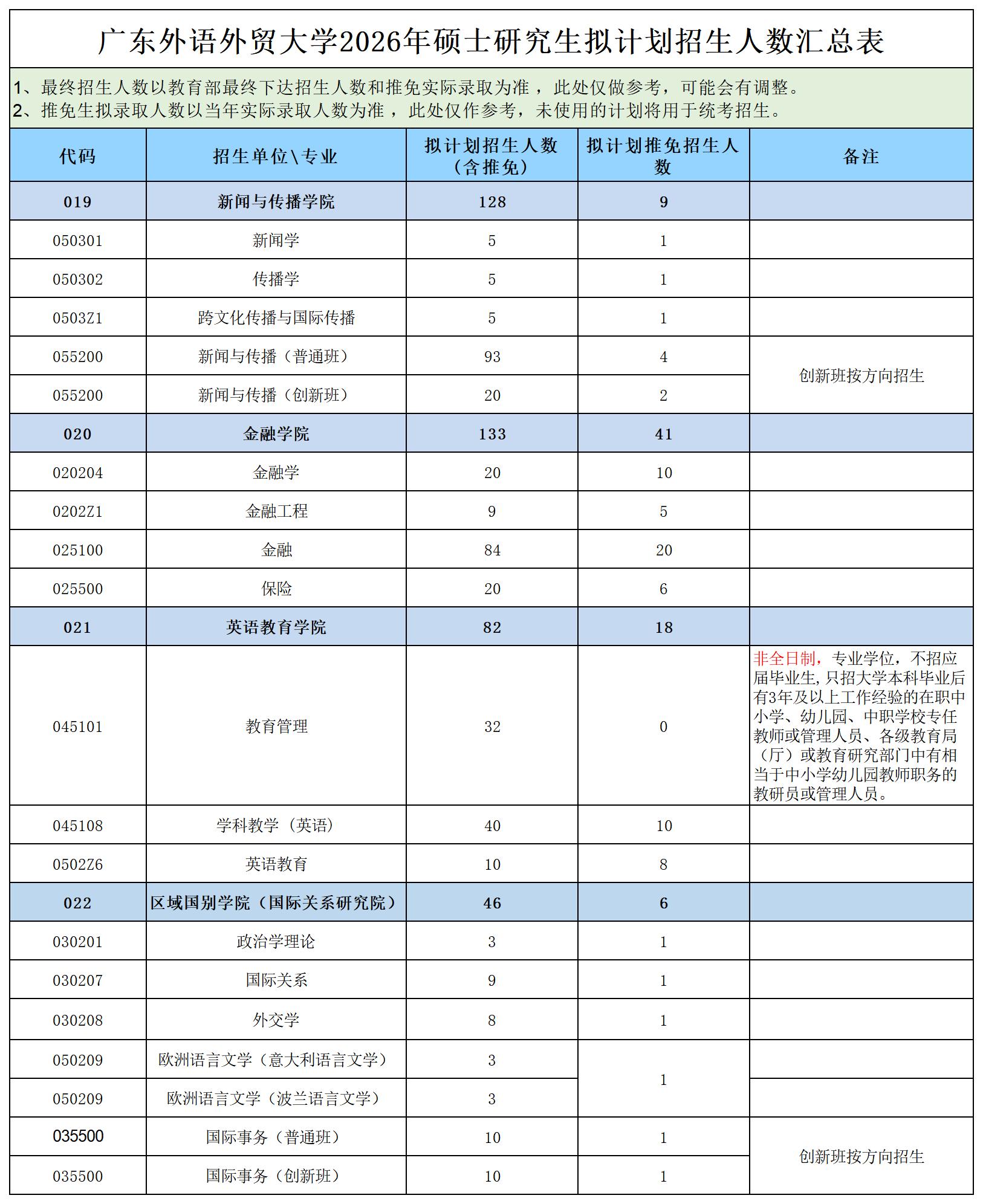 广外26研究生招生专业及人数公布!。广东外语外贸大学2026年硕士研究...