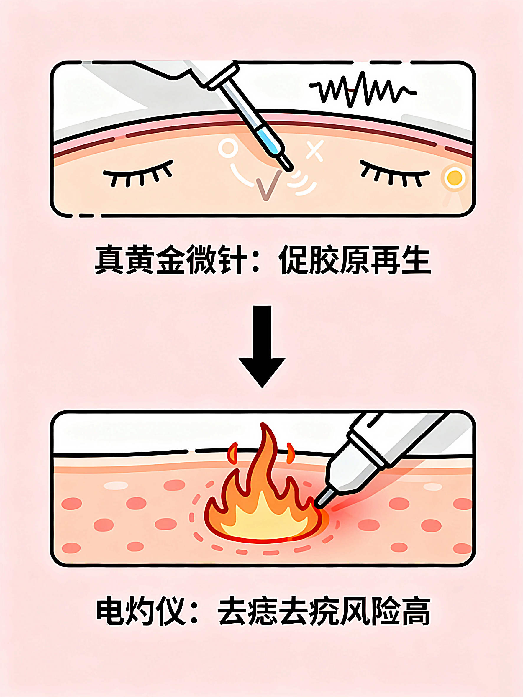 这个事件中,美容院把高频电灼仪包装成黄金微针来忽悠消费者。其实,真正的黄金微针是结合了微针和射频技术,能精准刺激皮肤深层,促进胶原蛋白再生,从而改善细纹和肤质。而高频电灼仪主要用于表皮问题,比如去痣或去疣,但它操作风险较高,容易导致皮肤灼伤或色素沉着。