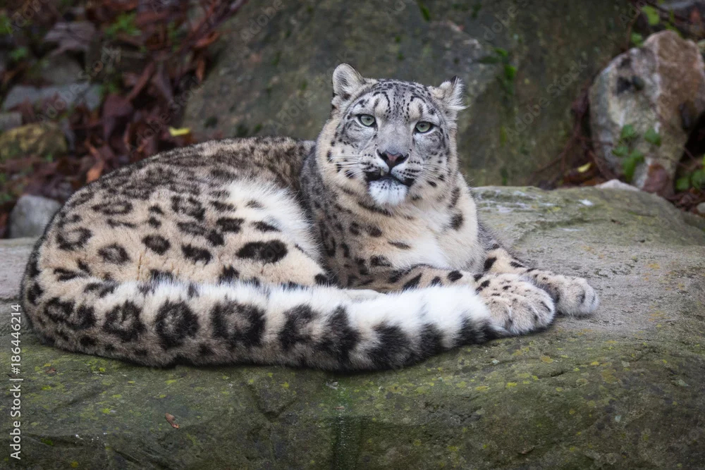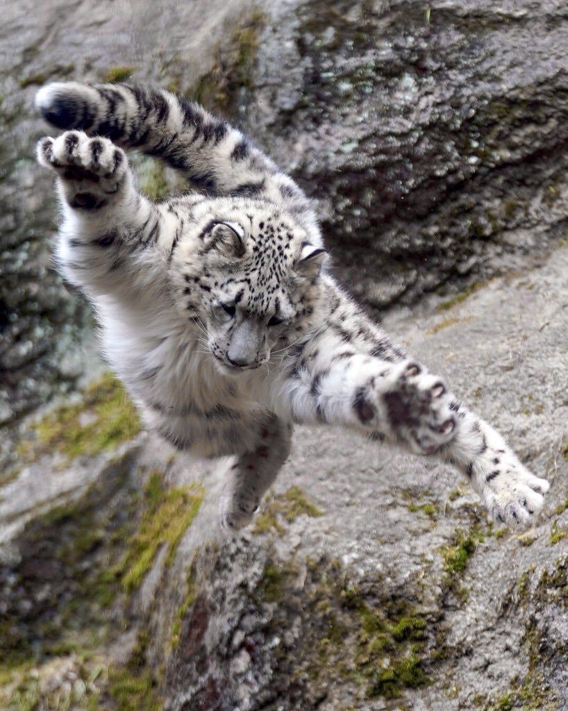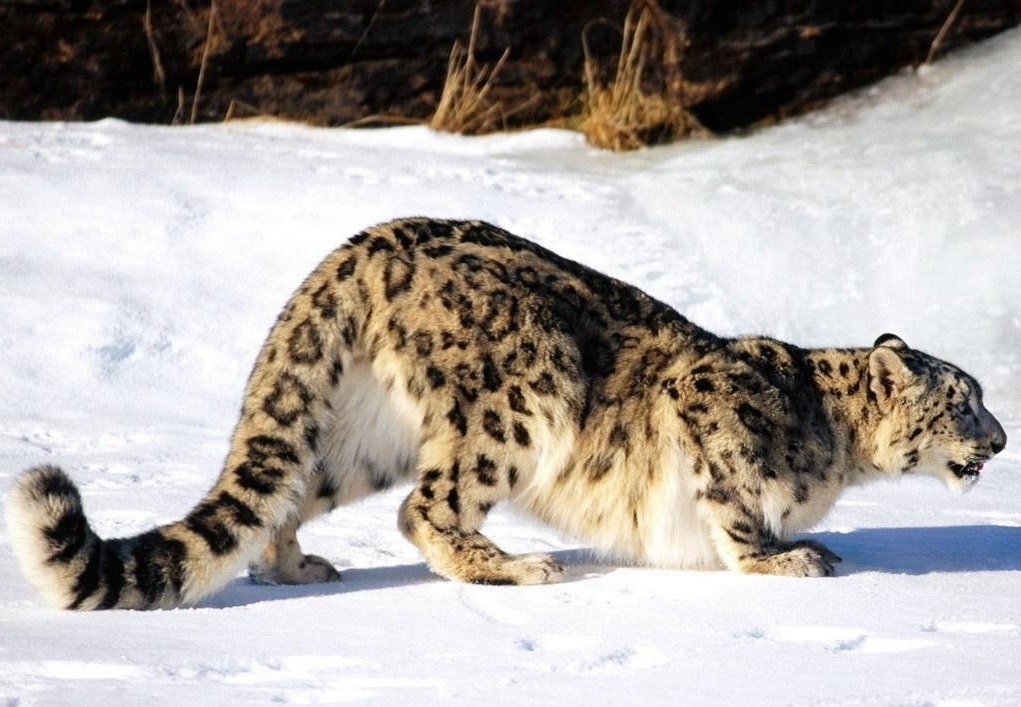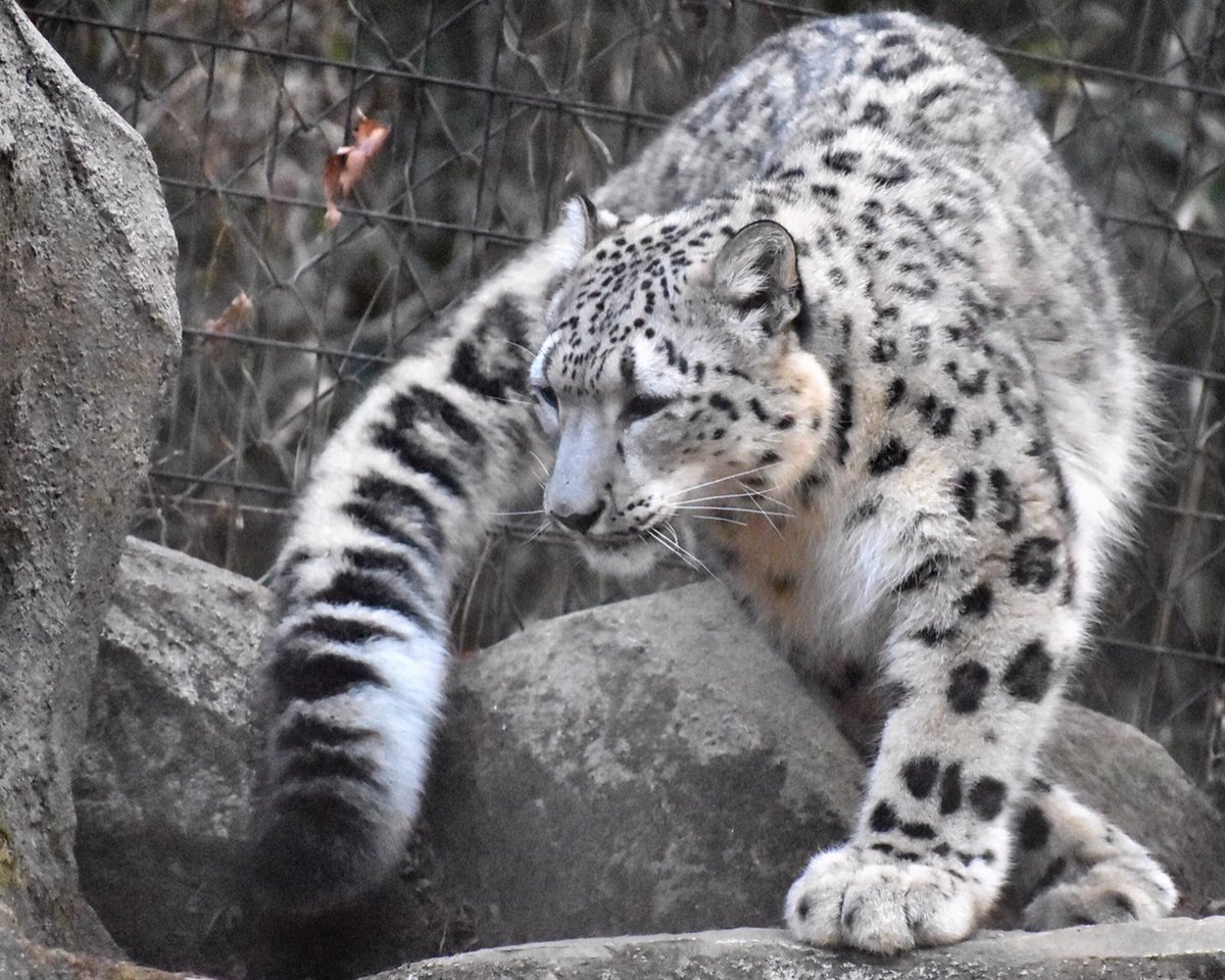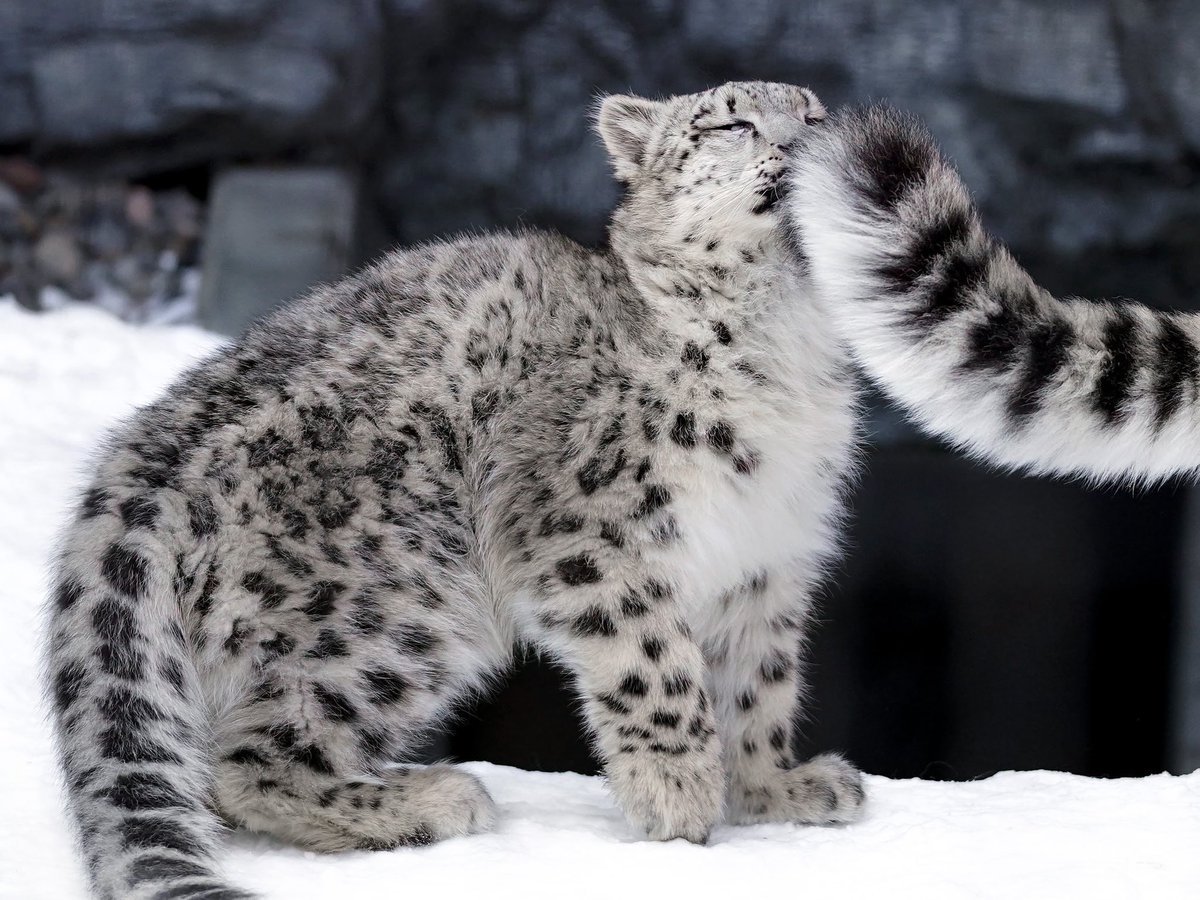 雪豹粗大且毛绒绒的尾巴,不仅在严寒的户外可以为它们保暖,更重要的是在陡峭的山壁上追逐猎物时,尾巴还能很好地为身体提供平衡支撑~