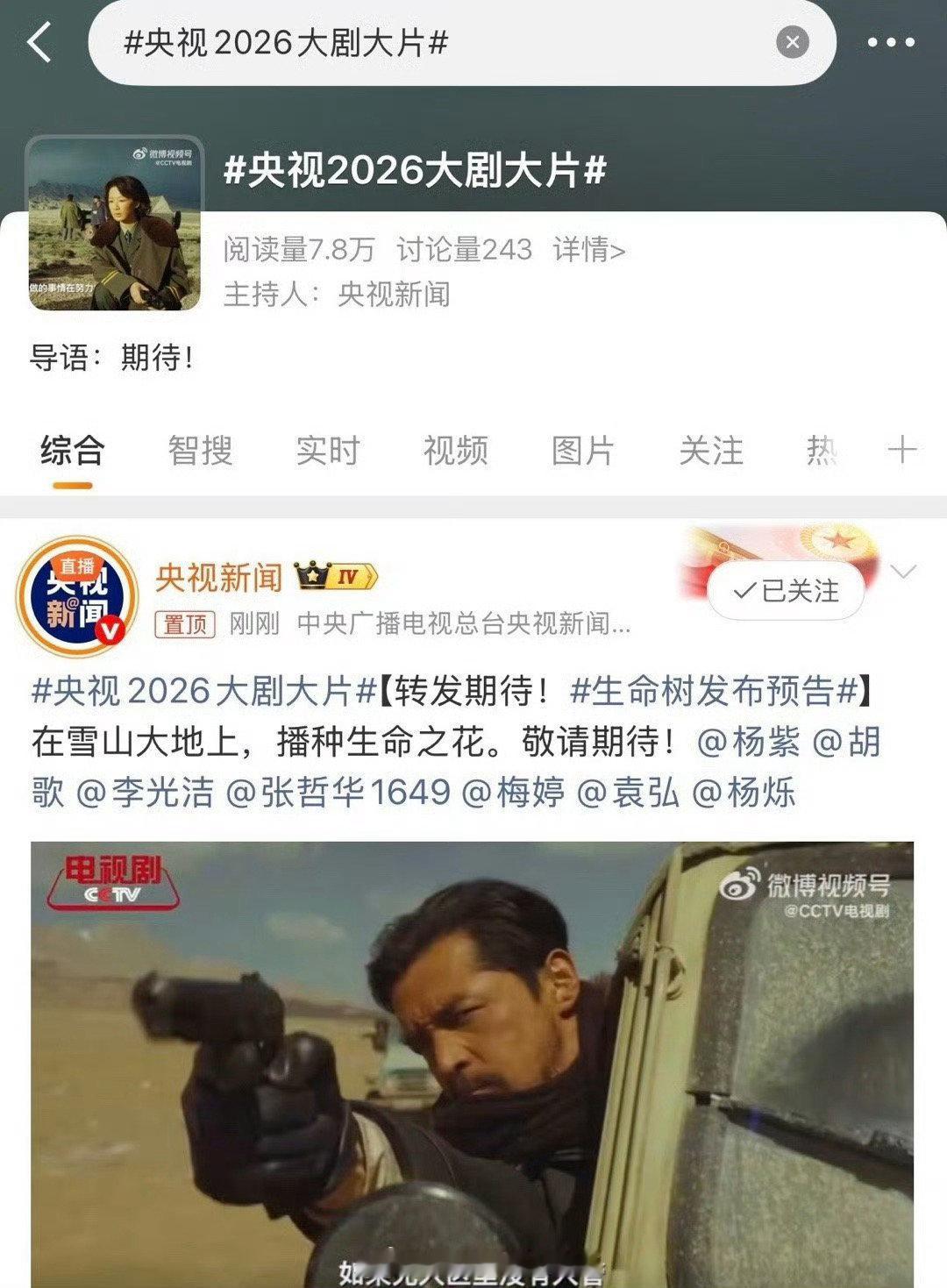 央视给的生命树预告排面🈶!期待杨紫白菊
