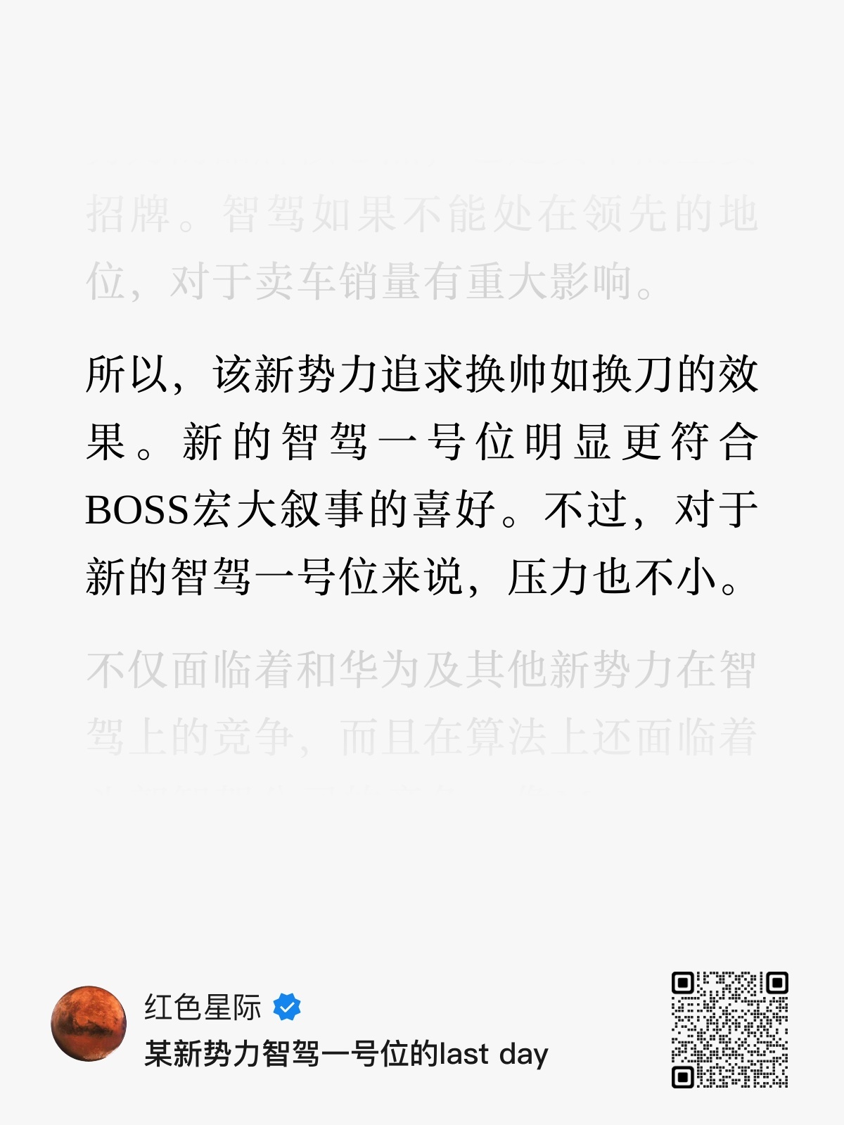 红色星际这篇「某新势力智驾一号位的last day」,信息量很大啊。