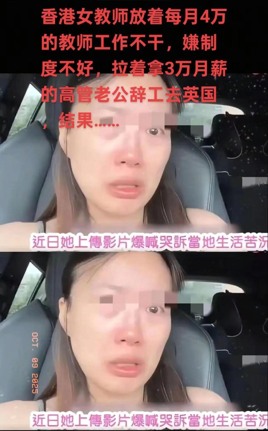 放着4万月薪的教师工作不干, 拉着3万月薪的高管老公辞工闯英国,这操作 真看傻了!刷到这对香港夫妻的近况,只觉得一手好牌被打得稀碎。 哪是什么追梦?分明是被幻想迷了眼。他们以为凭学历能轻松立足, 却不知英国不认可他们的资质和学位。如今女方在姜饼厂拧流水线, 男方骑电动车送外卖,曾经的体面荡然无存。 这根本不是运气差,是没戳破滤镜的盲目。数据早说了,近半数移英港人失业, 就算找到工作也多是体力活。嘴上喊着“值得”,眼里的委屈藏都藏不住,这种自找的落差真不值得同情。 你身边有过类似“为幻想放弃现实”的例子吗?他们最后都咋样了?