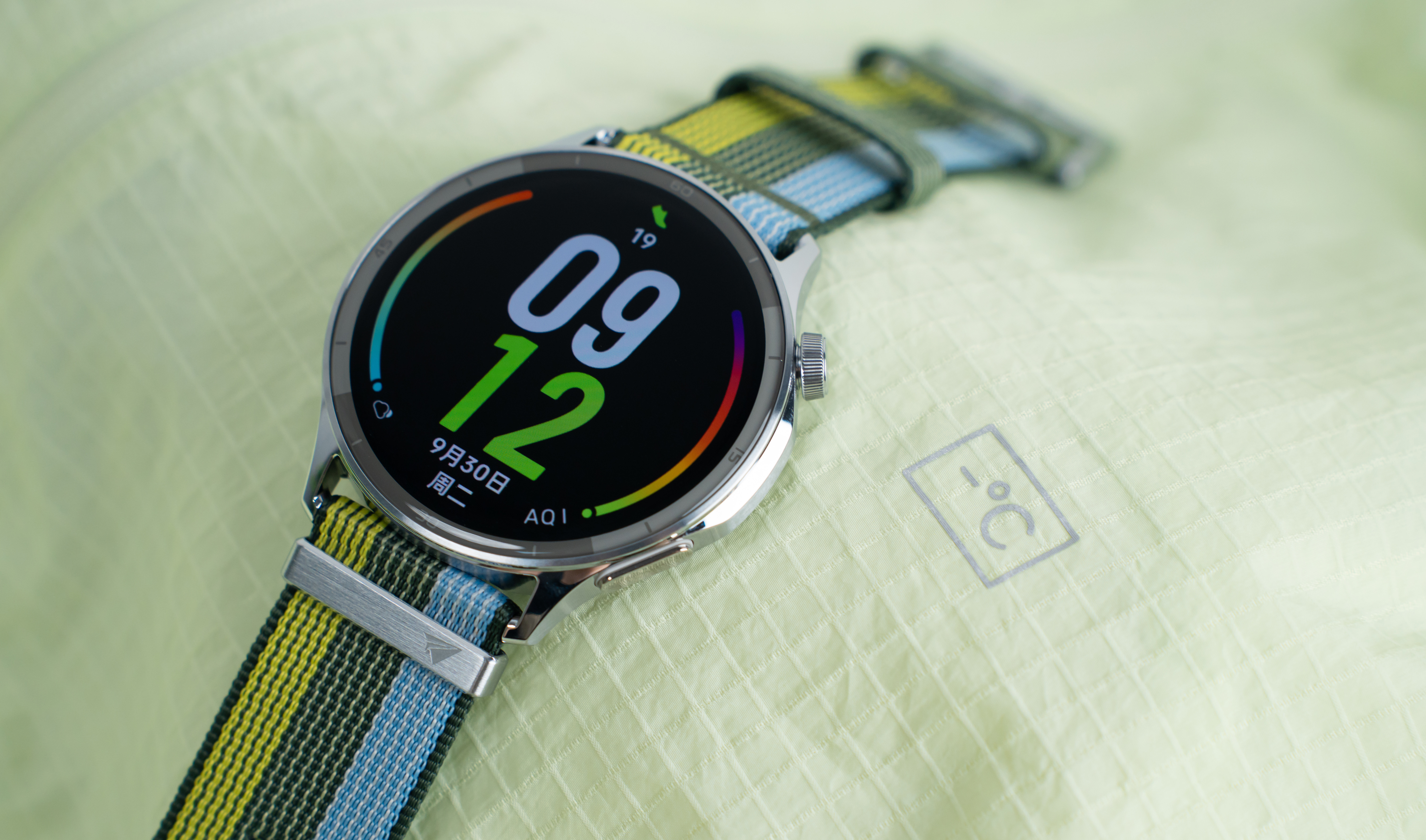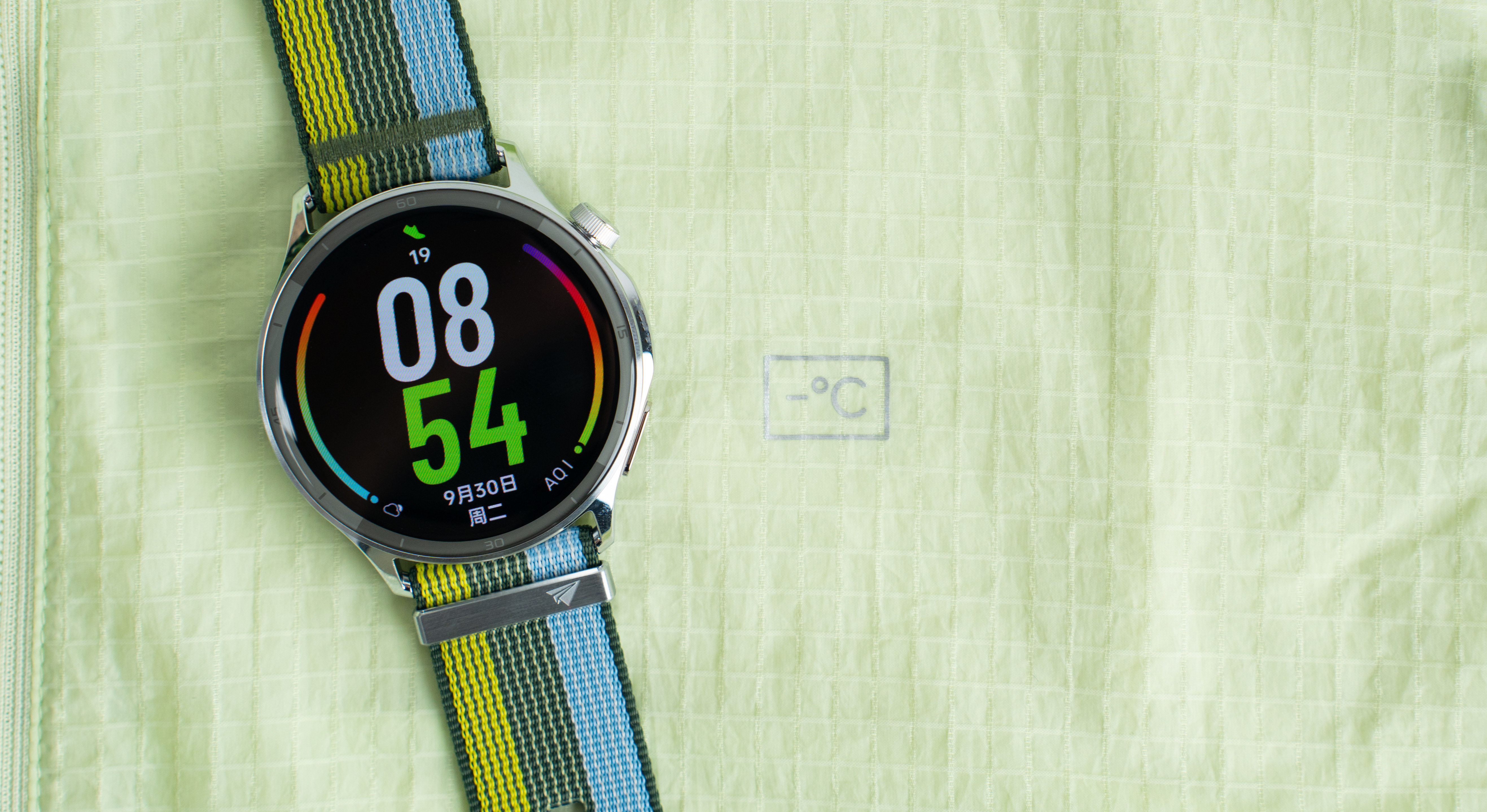我这款是「跃动绿茵」淡蓝拼绿编织带超有青春活力,还通过了5A抗菌认证,水洗100次依然抗菌,表圈刻度更是细节感拉满;