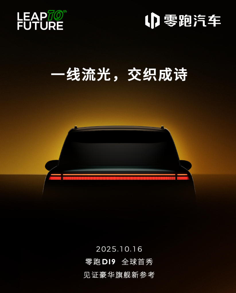 车若初见[超话]零跑D19亮相定档10月16日,今儿发了预告图,全尺寸大六座,