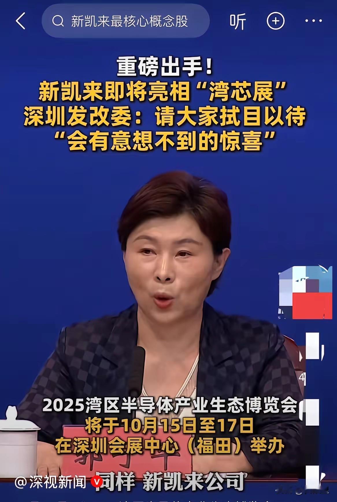 华为比亚迪腾讯平安,这是深圳前40年诞生的企业高峰,那后40年,谁有可能接棒深圳下一个巨头企业?从即将举办的湾区半导体产业生态博览会就可知分晓。最近深圳发改委站台官宣深圳的一家半导体公司:新凯来。这家公司从上半年亮相上海半导体展会后,就获得全网的关注,大家惊呼之前从未听说过这家公司。没错,这是家新公司,诞生于2021年中美芯片大战的背景下。由深圳国资委投资,华为星光实验室原班人马出人出技术,是国家队和民间队的组合,堪称资金和技术两大最完美的结合。从这名字字面意思理解:新的技术凯旋归来,英文Sicarrier,芯片母体或芯片航母!有资料显示,华为将近3000名关联半导体的专业人才全部移交新凯来。此前一直都默默无闻,低调得大部分人都不知道。就在这短短四年时间,已经成长为半导体行业的巨头!订单额超百亿,连像鹏芯微、华虹、中芯国际、长江存储等行业龙头都是它的客户,估值将超800亿。此次深圳站台新凯来,再次将其推向市场前台,宣告深圳和新凯来在芯片和光刻机制造领域取得的巨大成就!一起拭目以待!