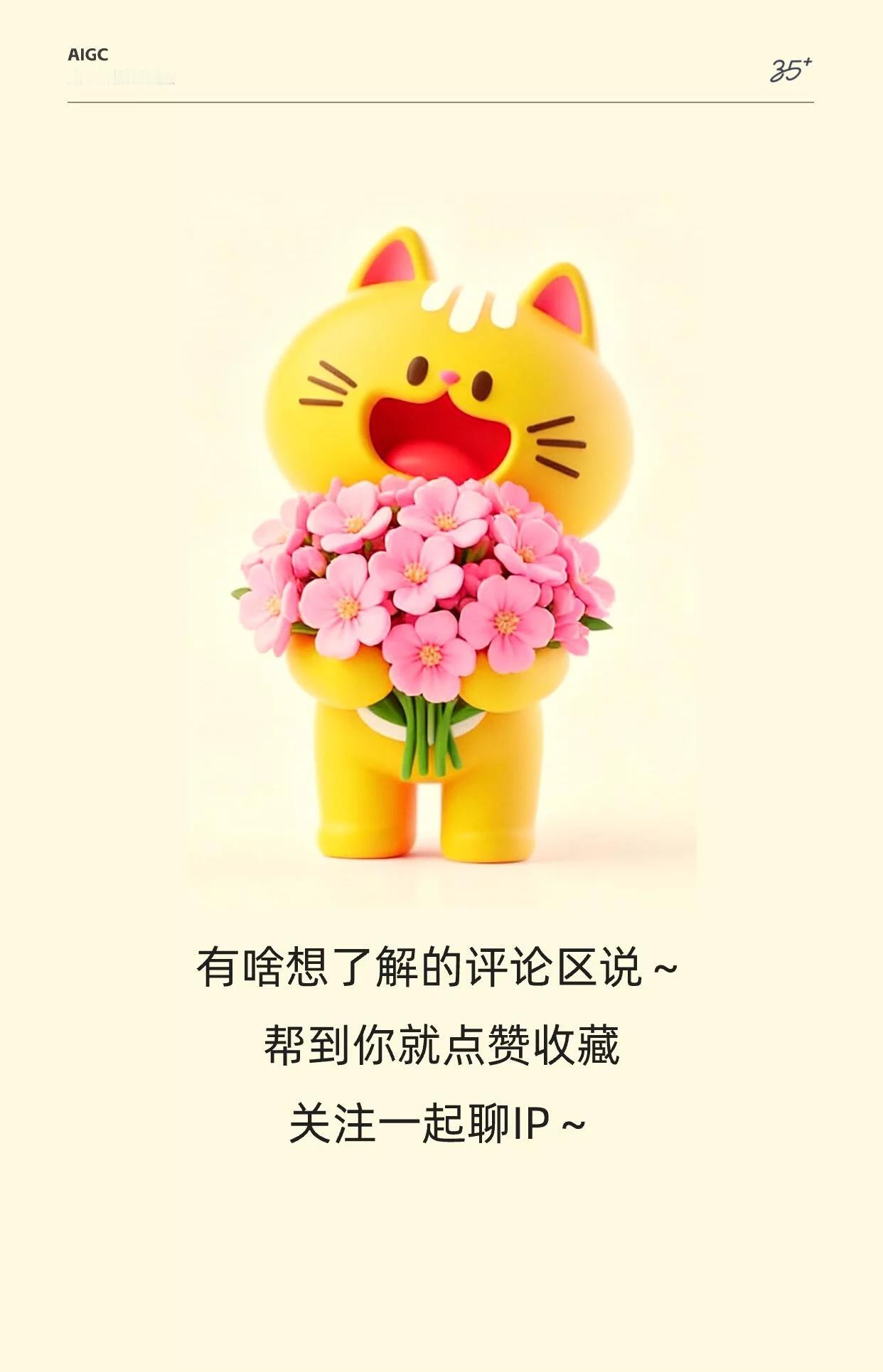 比如“圆脸小猫捧束花”这种