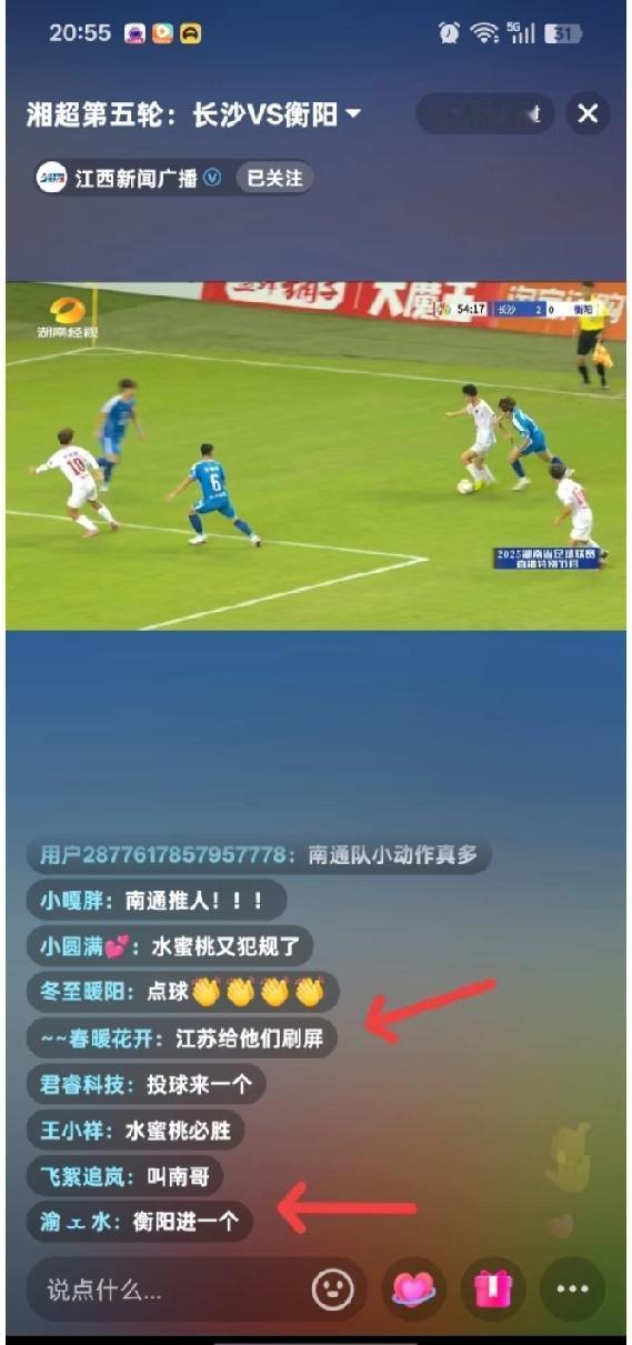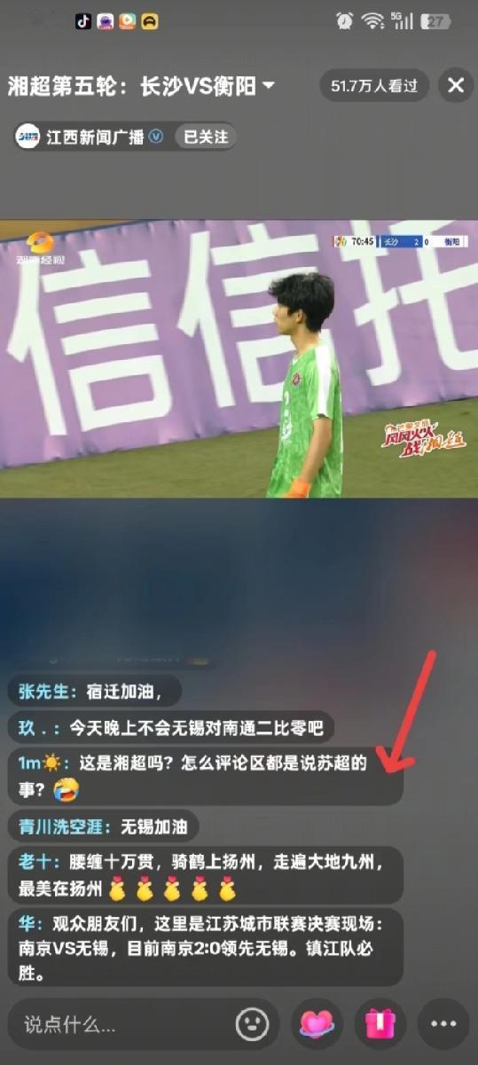 湘超的直播间,都被江苏人刷屏了!这难道就是所谓的“溢出效应”? 昨晚湘超长沙vs