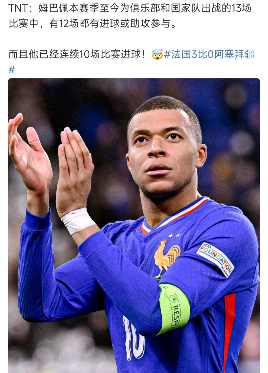 法国帝星就是姆巴佩,明年再拿世界杯轻松金球奖。 法国现在有好多锋线巨星,登贝莱刚拿金球奖,仍然不如姆巴佩,数据和作用都是姆总更高。 皇马也变成姆巴佩一个人的球队了。 只要他强,法国就强,皇马就强![赞]