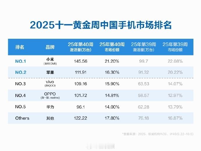 【雷军回应小米手机登顶黄金周销量第一 】10月11日,转发2025十一黄金周中国手机市场排名,表示:十一黄金周、苹果新品刚发布,小米手机能取得这样的成绩,还是非常了不起。小米17系列创新、体验和质感确实获得很多消费者的认可!